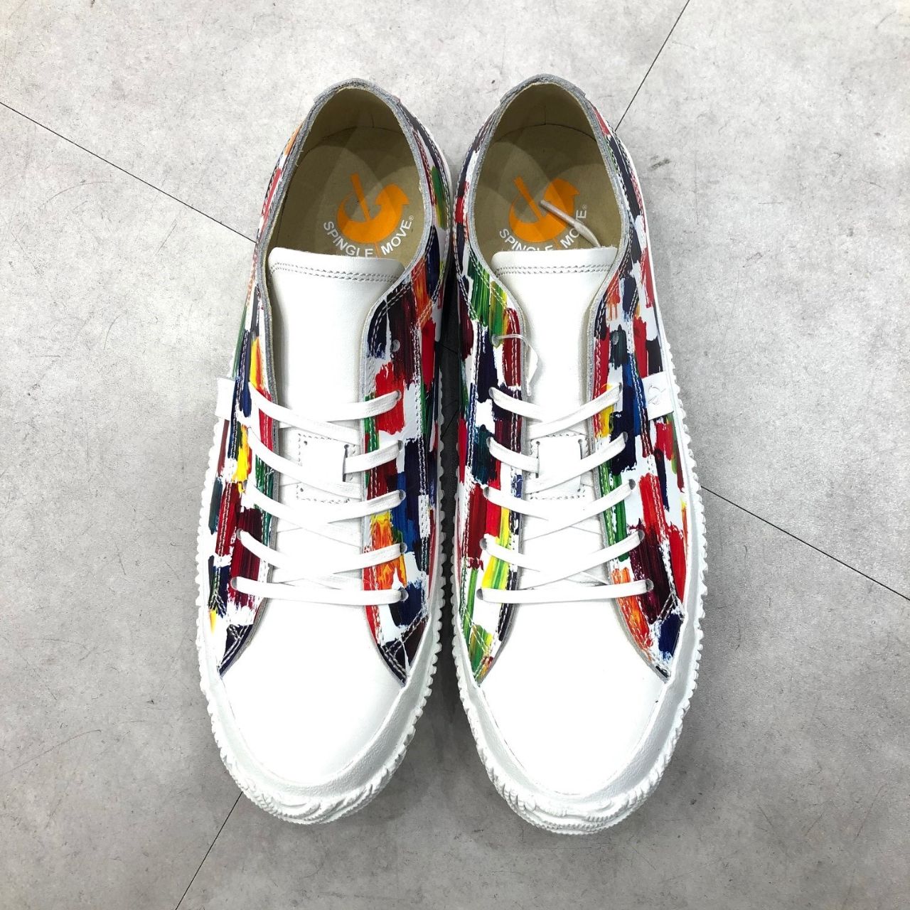 ハケペイント風のフィルムをプリントし、スムースレザーとのコンビで仕上げた1足です。