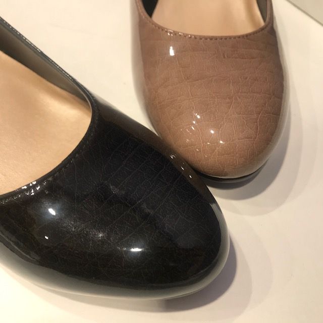 デザインはシンプルなエナメルパンプス