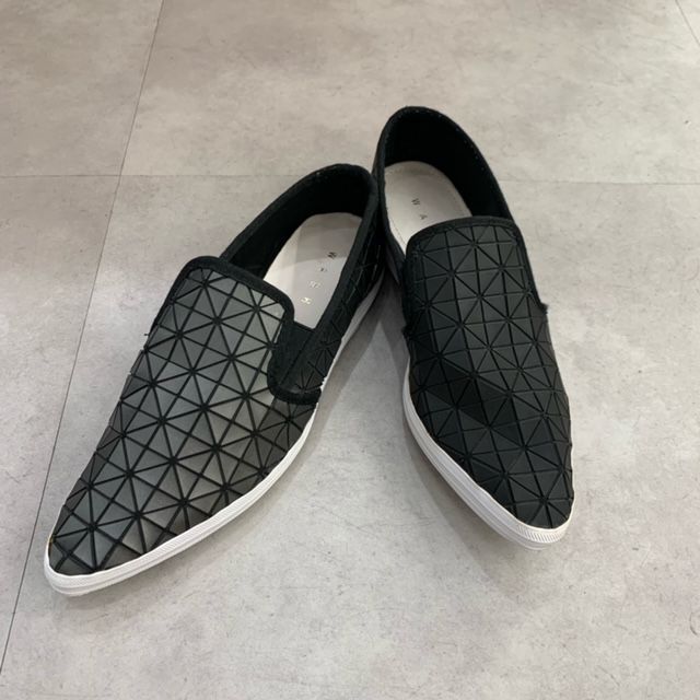 幾何学模様の個性的なスリッポン。