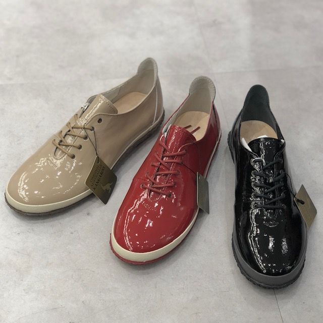 柔らかさに定評のある カンガルーレザー をエナメル加工した素材を使用しており