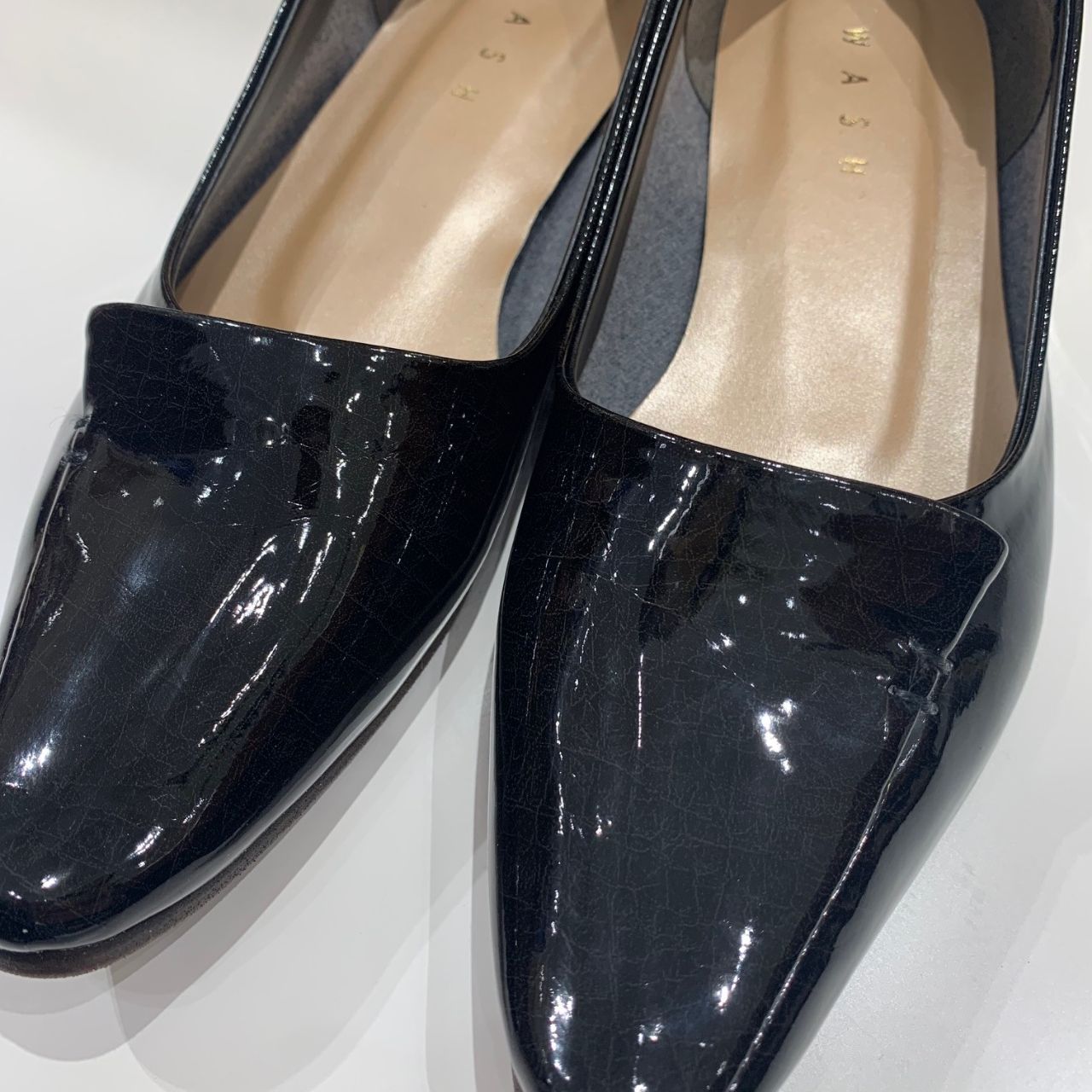 本日はリピーターNO1の人気パンプスからエナメル素材のデザインが