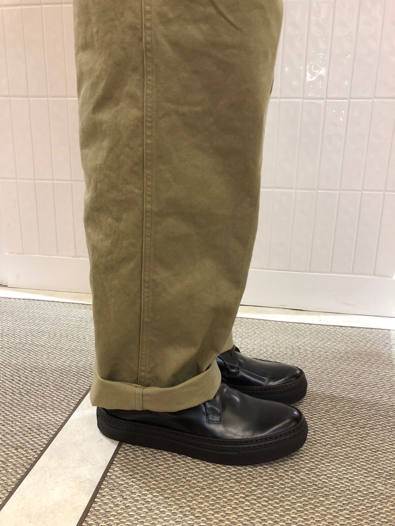 パントフォラ・ドーロのスタイリング、私は2タック極太ながらテーパードが効いたフランス軍チノが気分です。