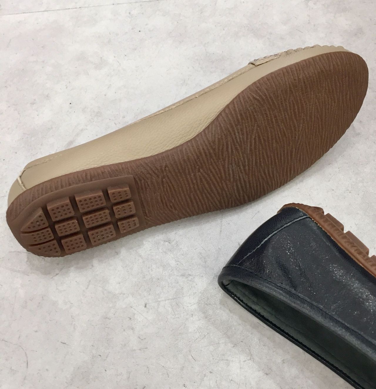 柔らかなレザーで非常に足当たりの良いフラットシューズ。