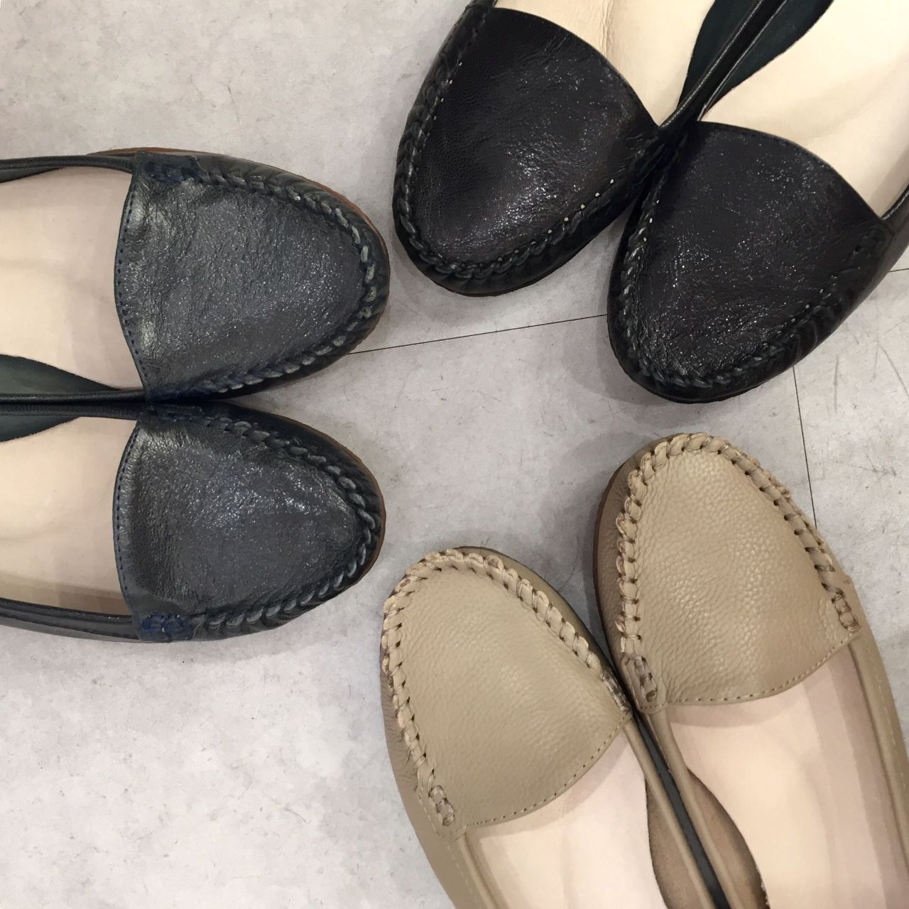 バレエシューズの女性らしさとローファーのカジュアル感を兼ね備え、