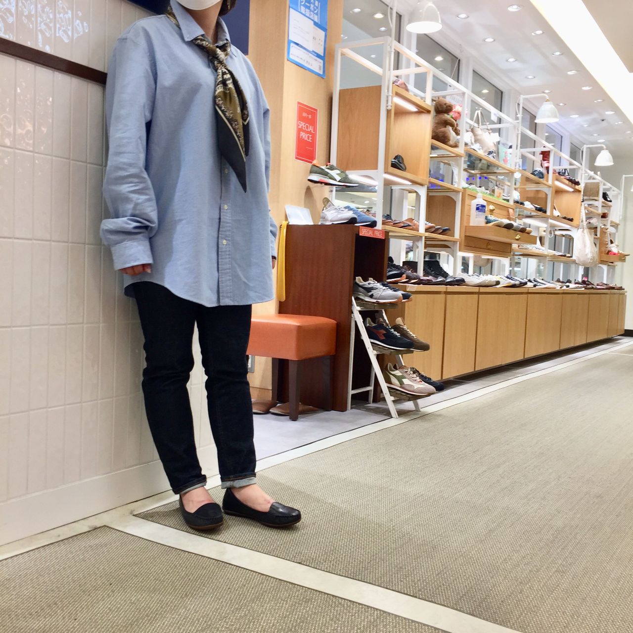 スタッフが合わせているように素足を見せて合わせて頂くと