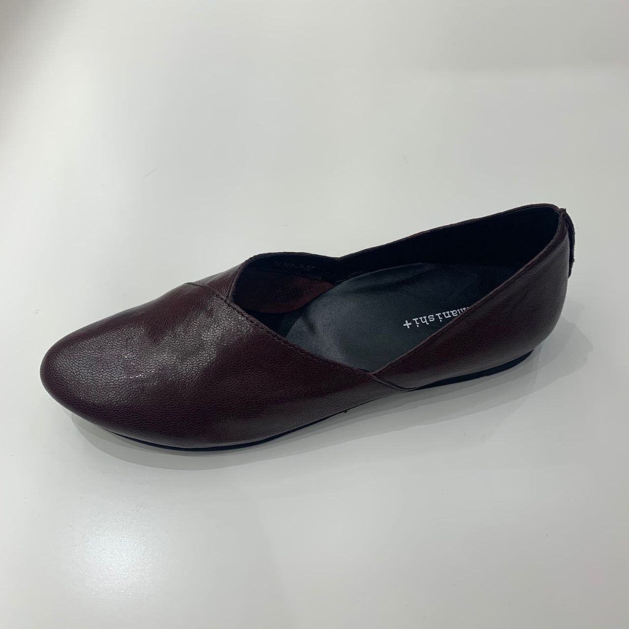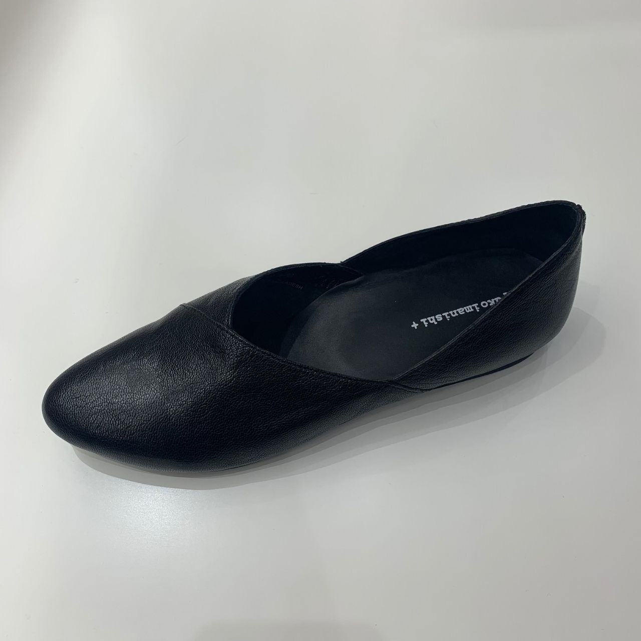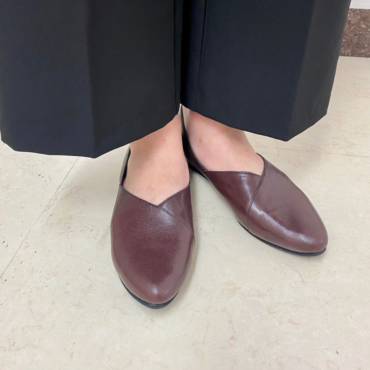 主張しすぎないシンプルなデザインが魅力のこちらのフラットシューズ、