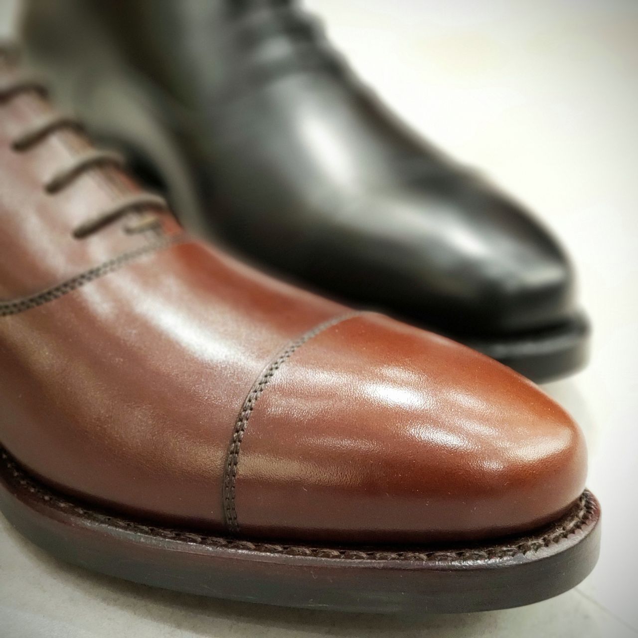 つま先の立体的なシルエット、靴全体のバランス、カーフレザーの質感等、