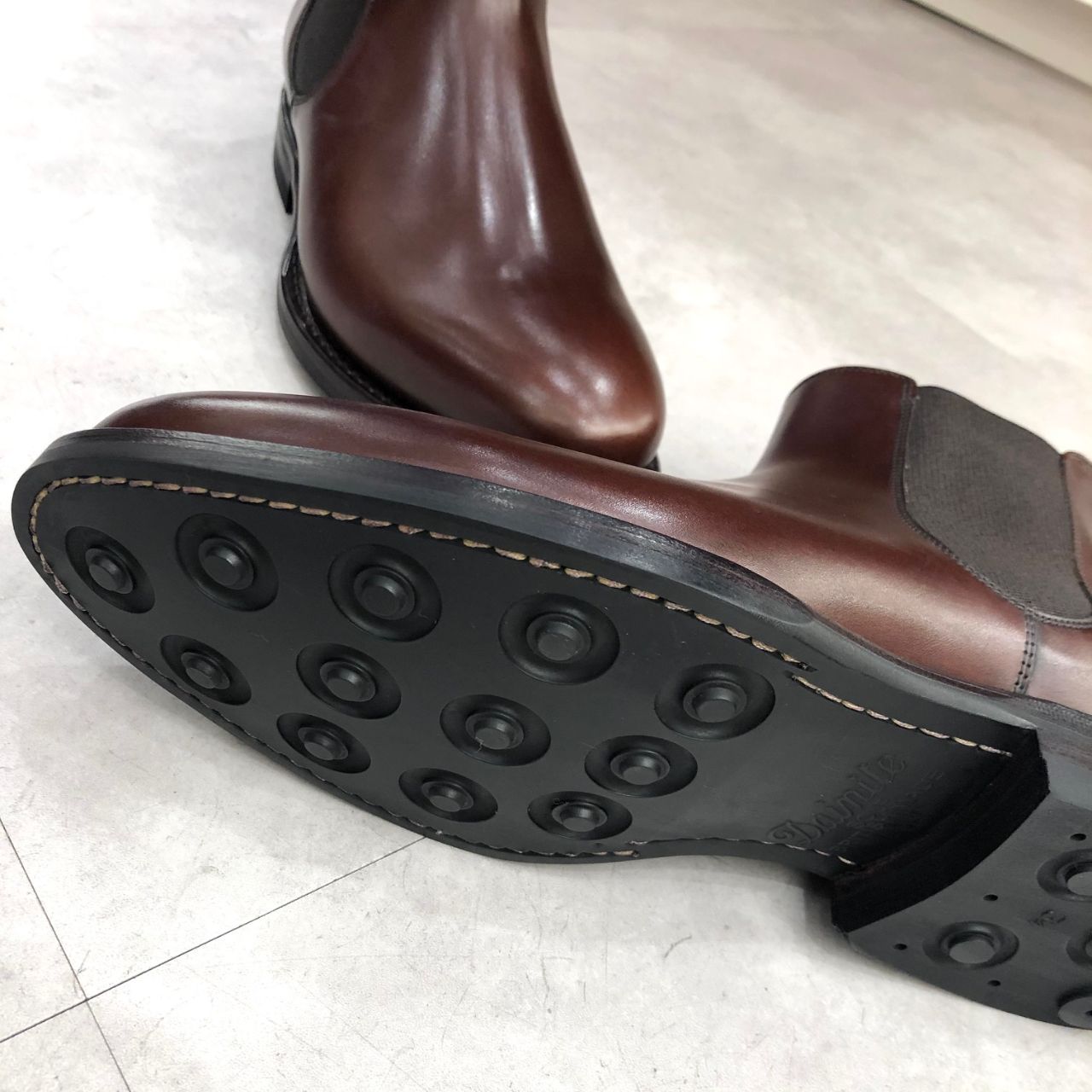 底材にはグリップ力と耐摩耗性を兼ね備えながらドレッシーな雰囲気を持つ、イギリス製のダイナイトソールを採用。