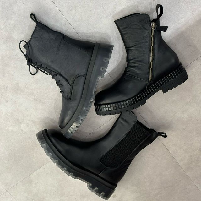 こちらもクリアソールが特徴的なサイドゴアのブーツ。
