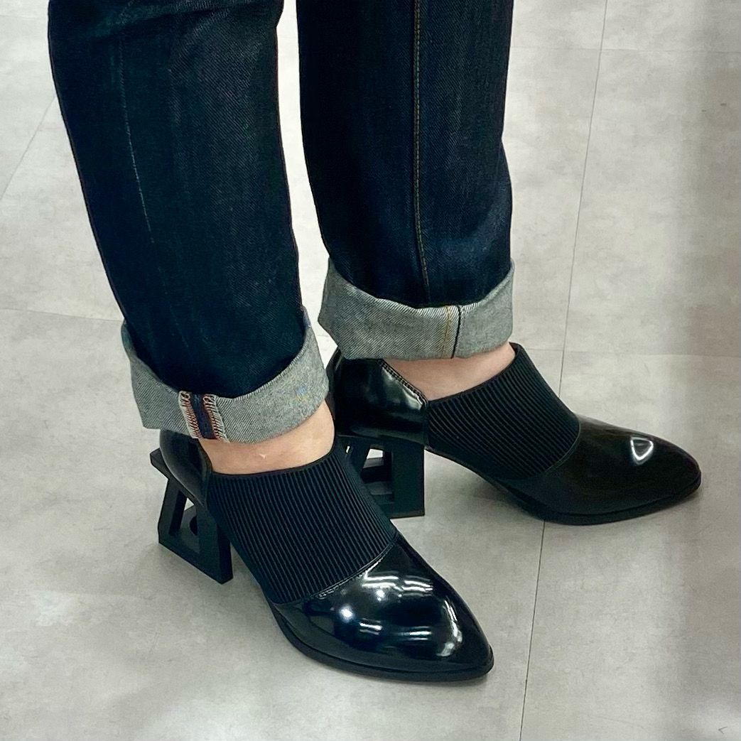 空洞になっている変形ヒールなので歩きにくそうな印象ですが…