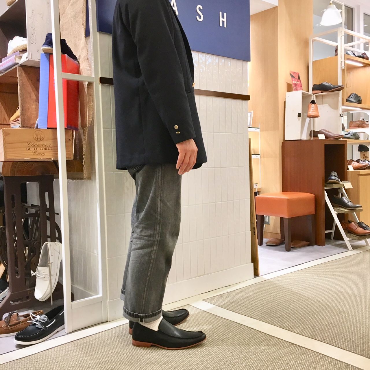 足元にスッキリとしたスリッポンが来るとコーディネートが引き締まりますね!