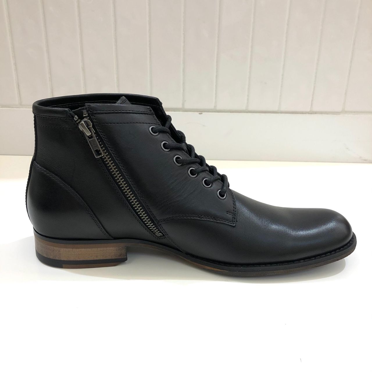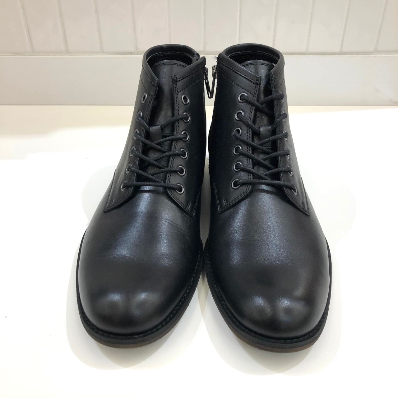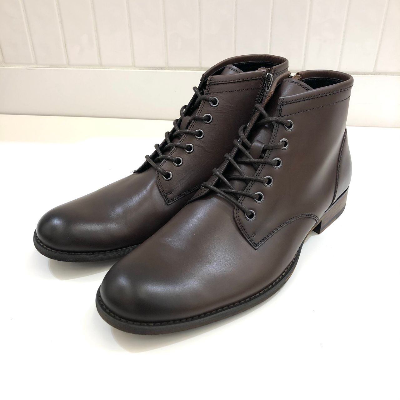 レースタイプですが、内側はジップ仕様になりますので、着脱しやすくストレスフリーでお履きいただけます。