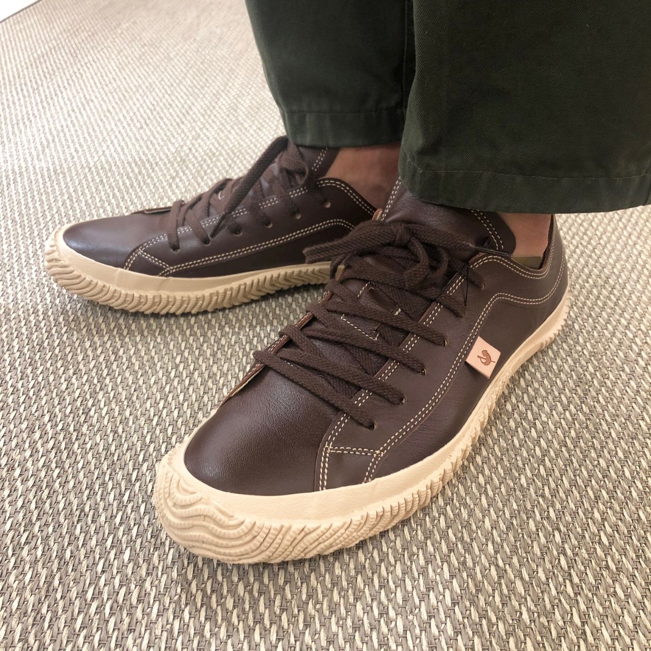 フォクシングテープとアウトソールを同色(生成)にする事で程よい統一感を感じます。