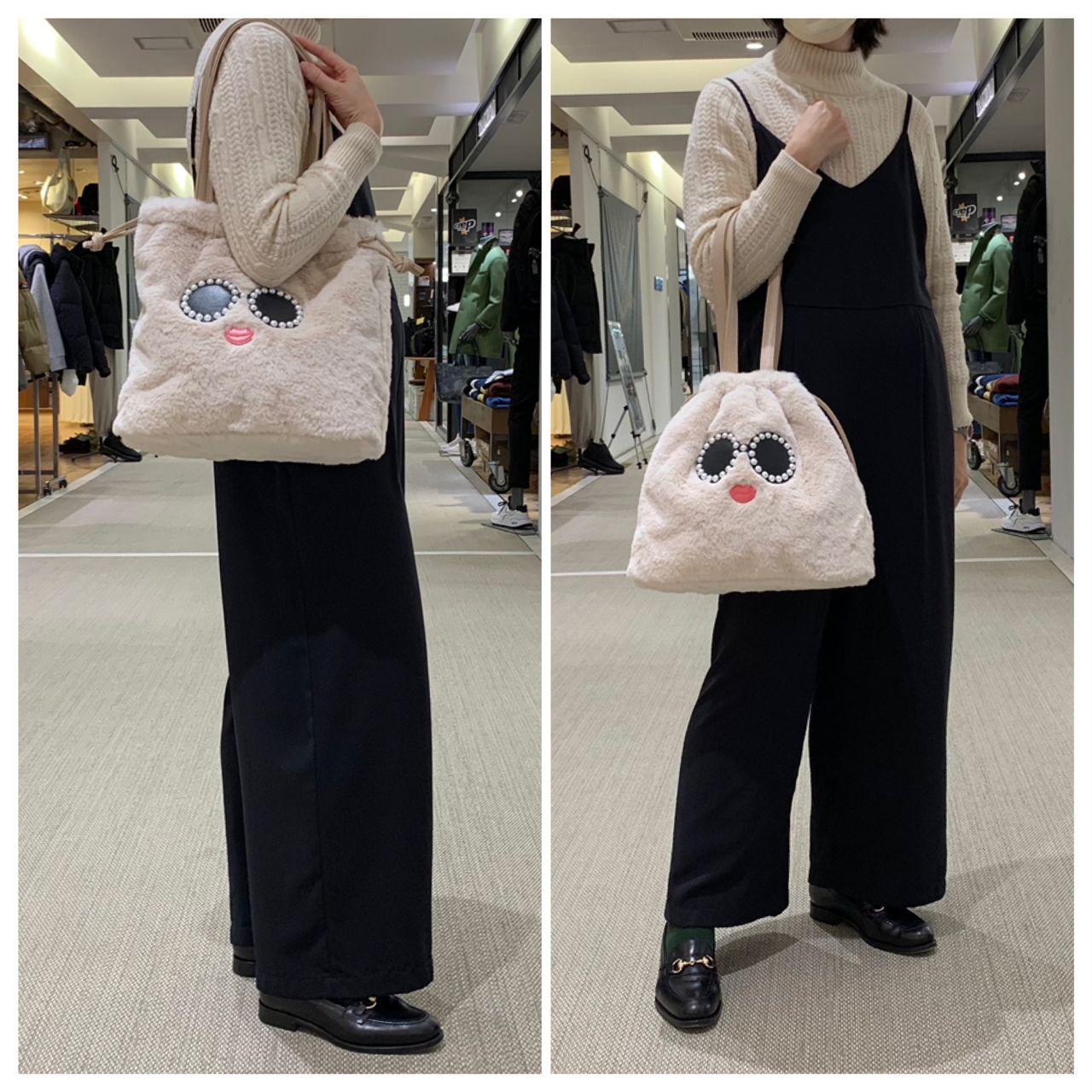 可愛らしいシルエットの大人可愛いファーバッグ、是非店頭で合わせてみて下さい☆