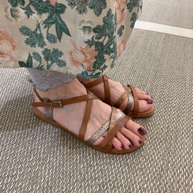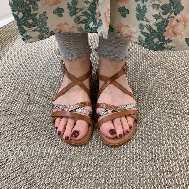 細い革ベルトのデザインが、華奢で女性らしい感じを、