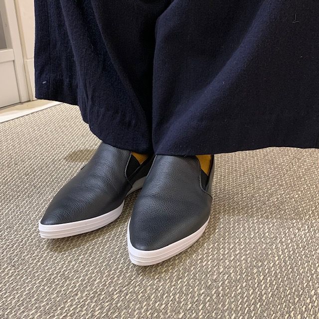 ポインテッドトゥが印象的なスリッポンスニーカー。