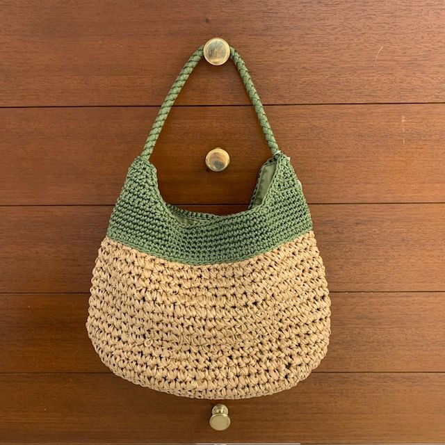 コロンとしたシルエットがかわいいクロッシェバッグ。