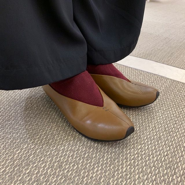 つま先の形と深めのVカットで安定感のある履き心地です。