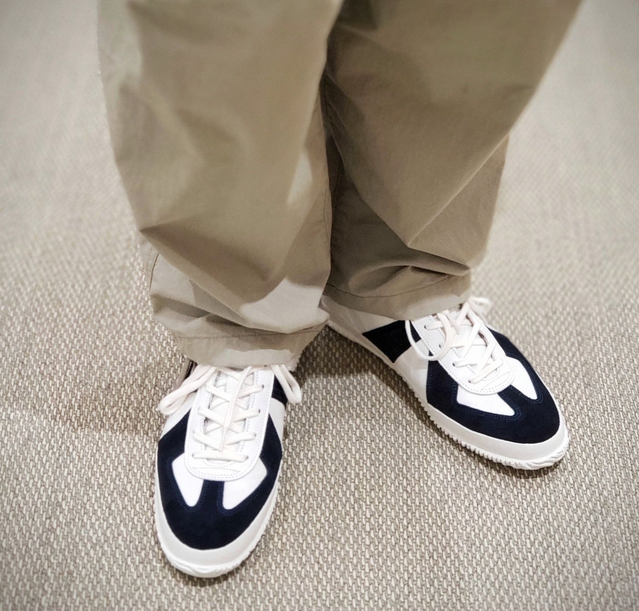 ジャーマントレーナーは1970~90年代にドイツ軍で軍用トレーニングシューズとして採用されていたスニーカーが基になっており、今ではファッションの定番として有名ブランドや各セレクトショップでも取り扱われるデザインです。
