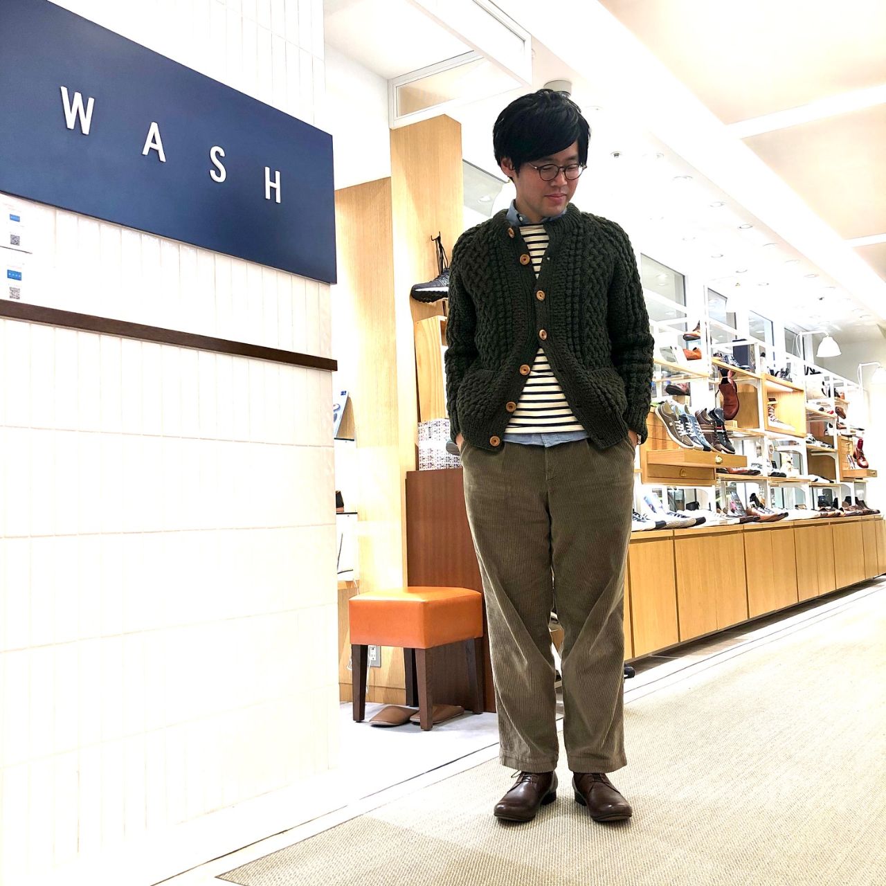 アランニット等、ざっくり系のニットとの合わせも温かみが出て267の魅力がより際立つかと思います。
