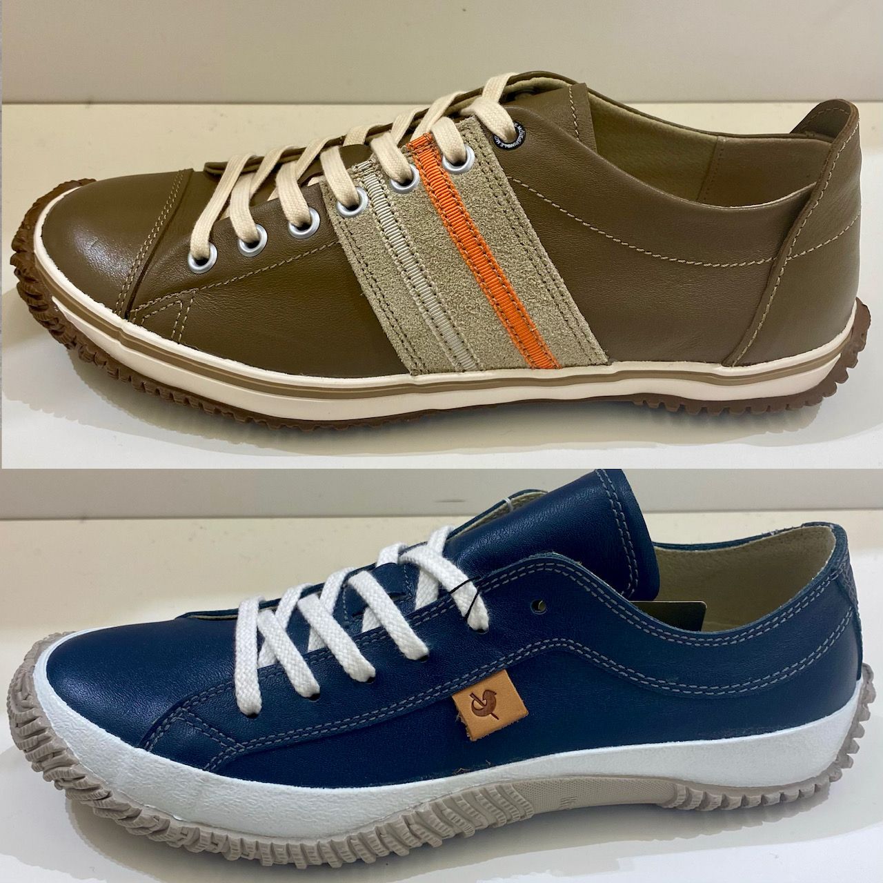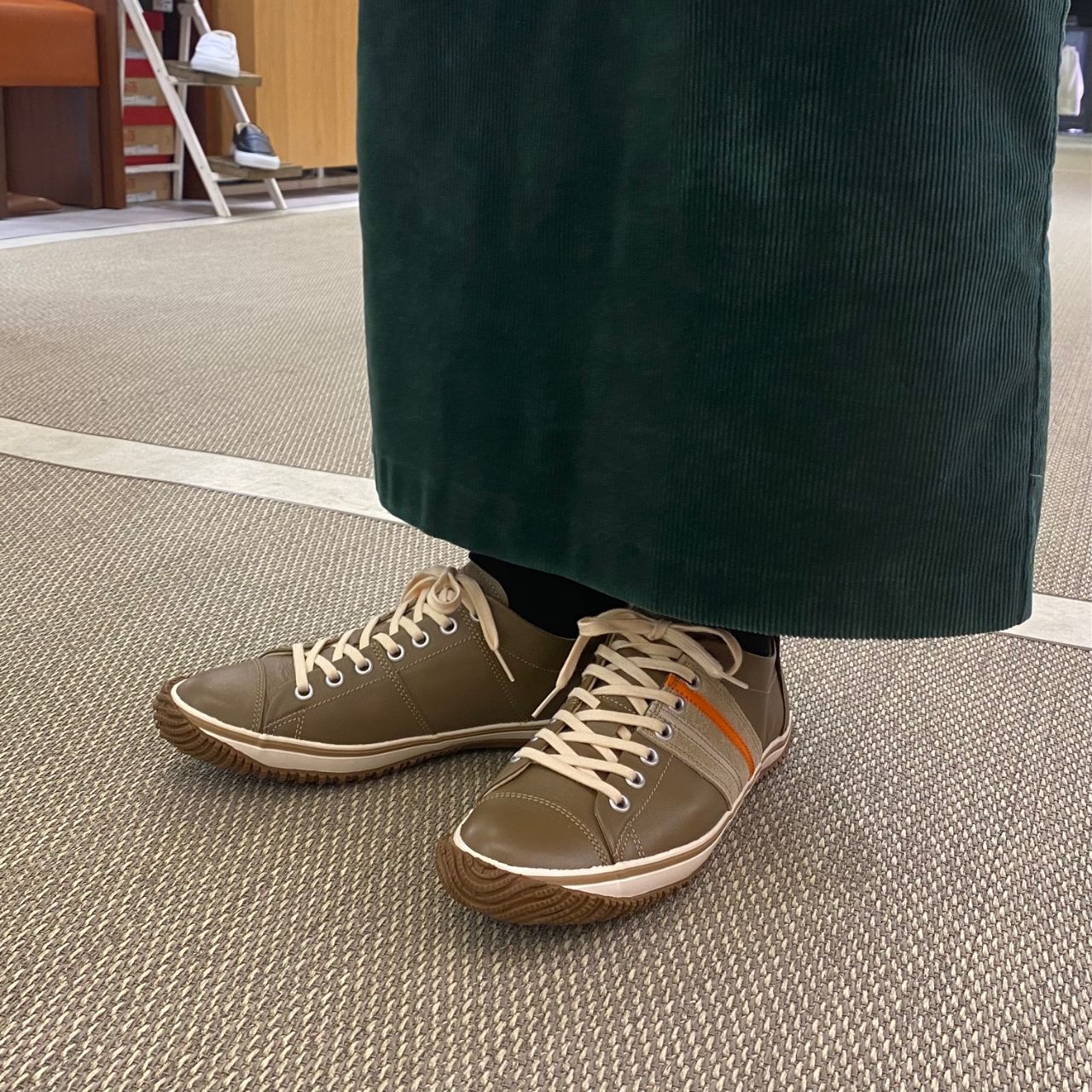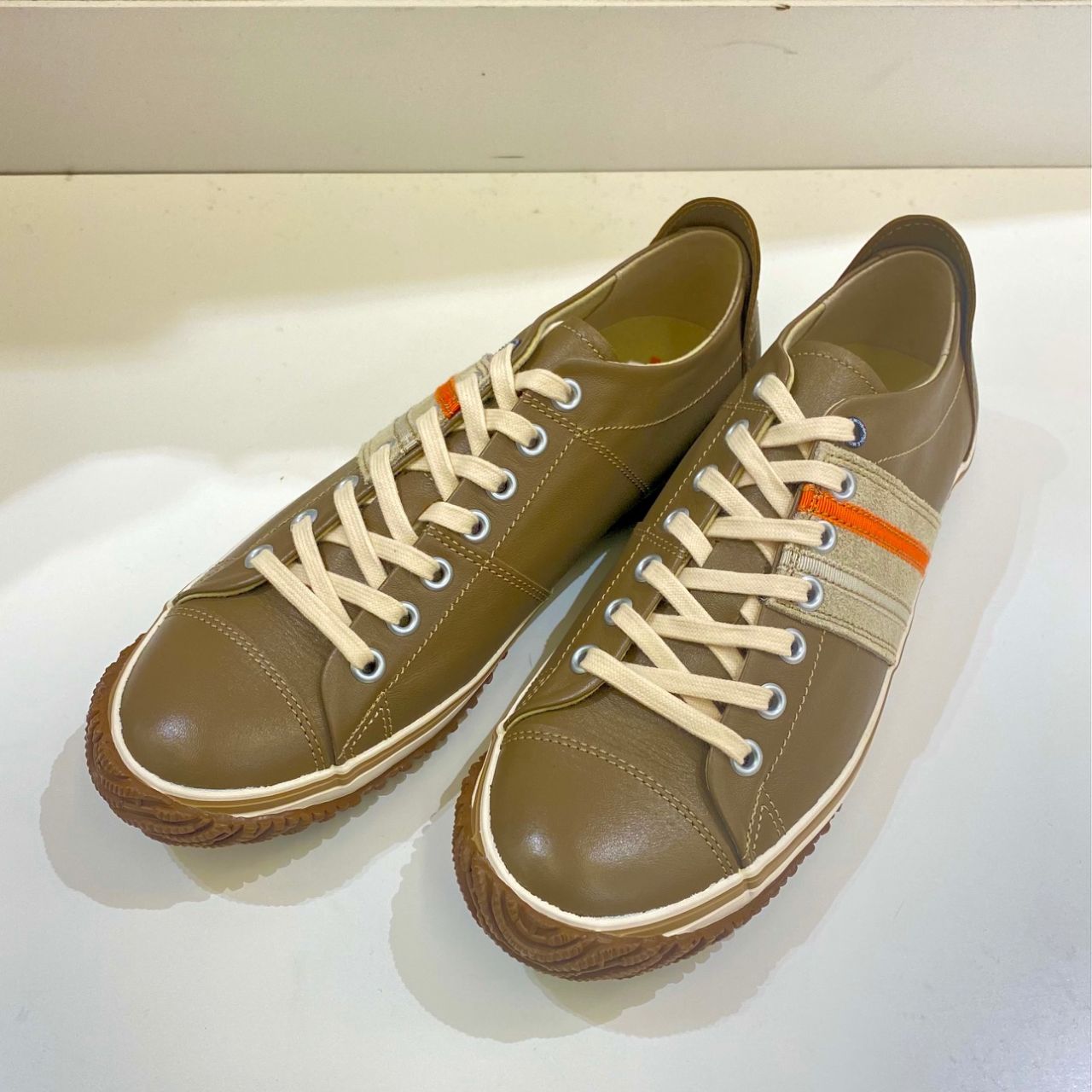紐はライトベージュ。サイドのオレンジのライン。