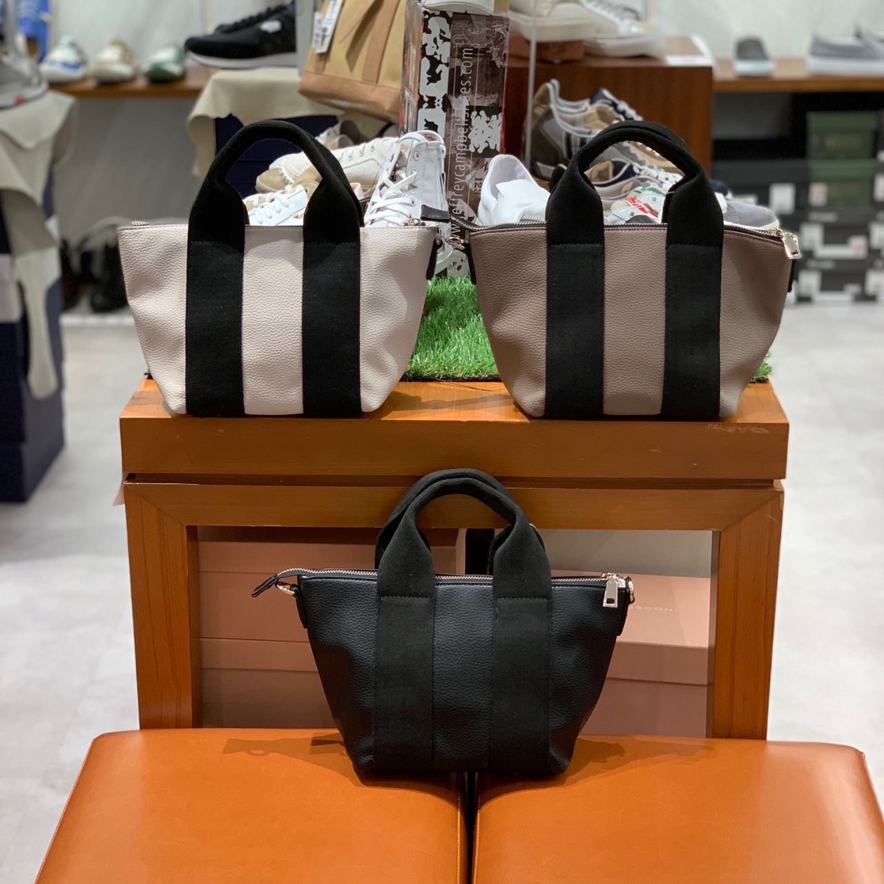 ベースは合成皮革で、ハンドル部分がキャンバス素材になっています。