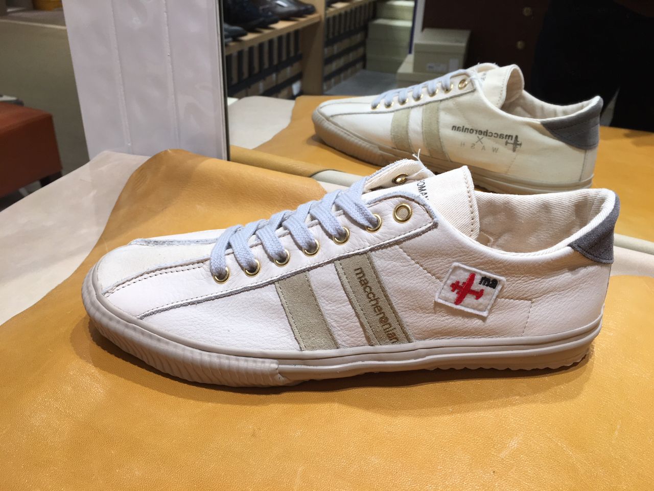 インソールの「MACCHERONIAN×WASH」のコラボロゴが