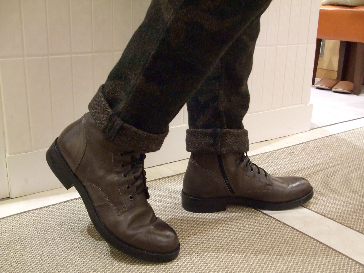 ブーツということで迷彩柄のミリタリーパンツ、ただ大人ブーツなので、
