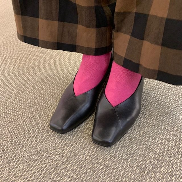スクエアなので安定感があって履きやすく、後ろ姿に差がつきますよね♪