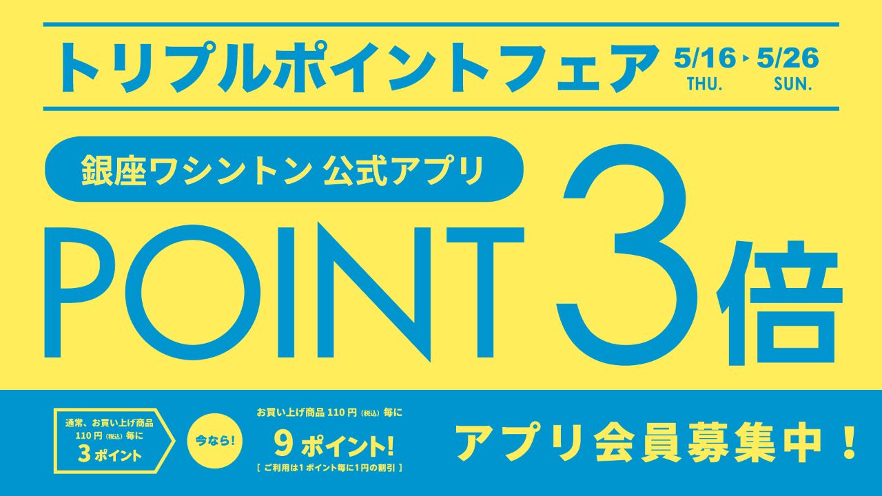 トリプルポイントフェア!!(銀座ワシントン公式アプリ会員様対象)