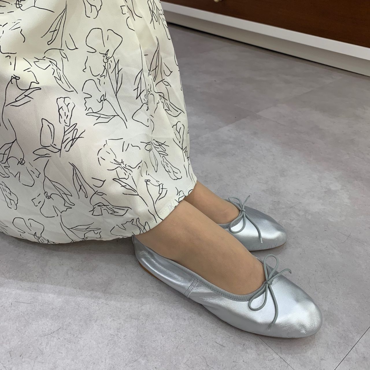 様々なスタイルに合わせやすいシンプルなバレエシューズですが