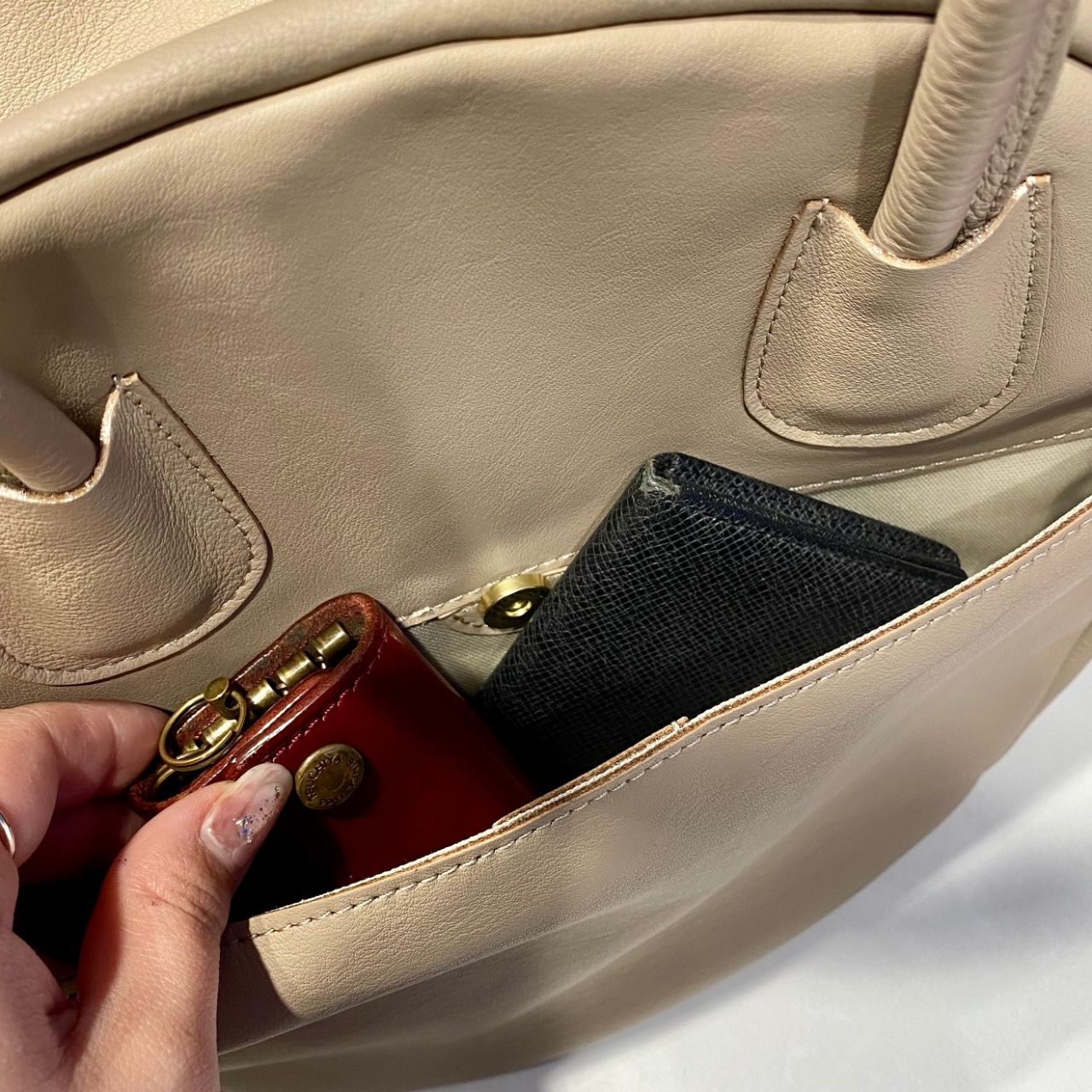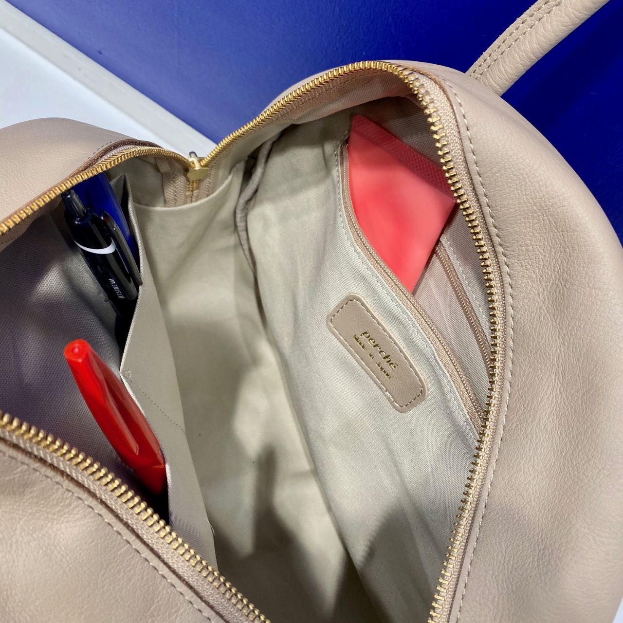 内側にはファスナー付ポケットが1ヶ所とポケットが2か所