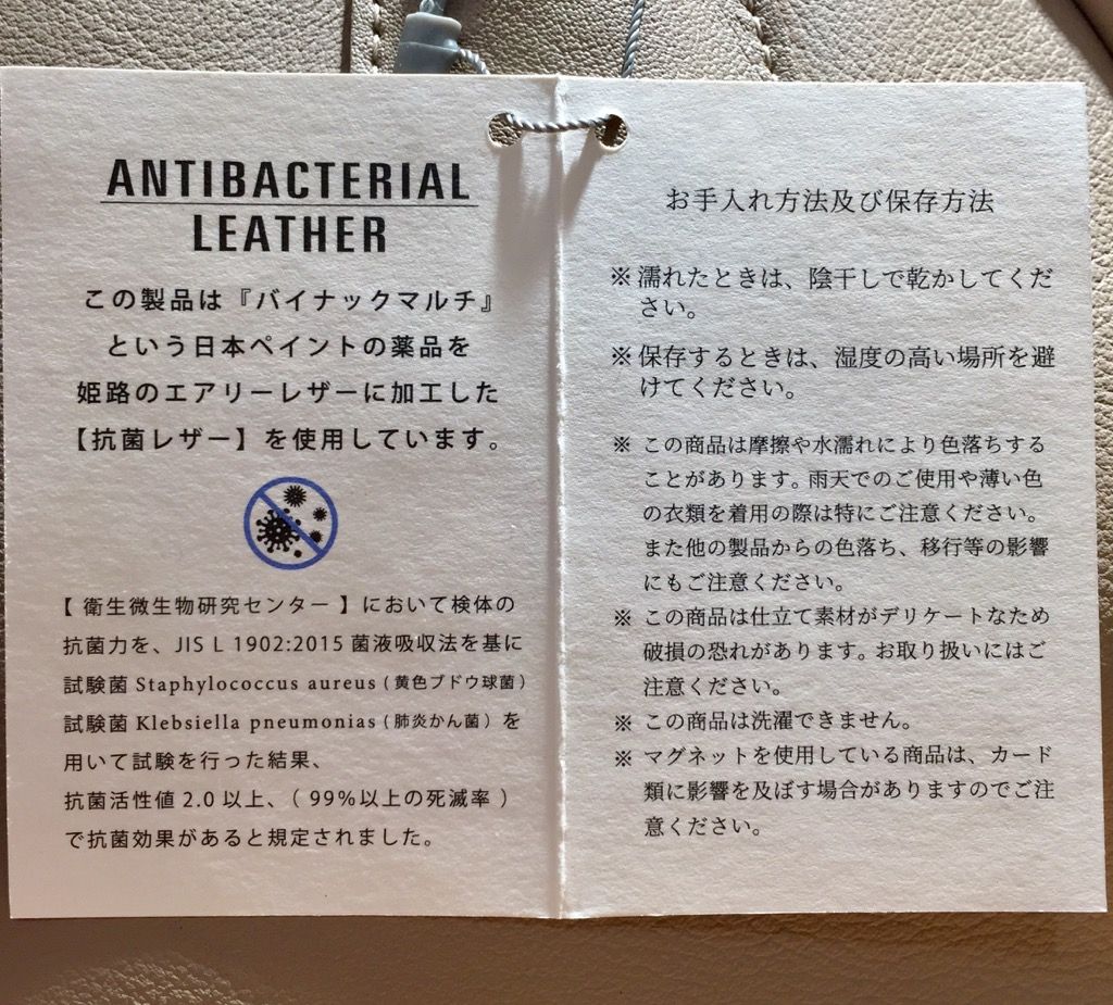 姫路のエアリーレザーに加工した【抗菌レザー】を使用しているそうです。
