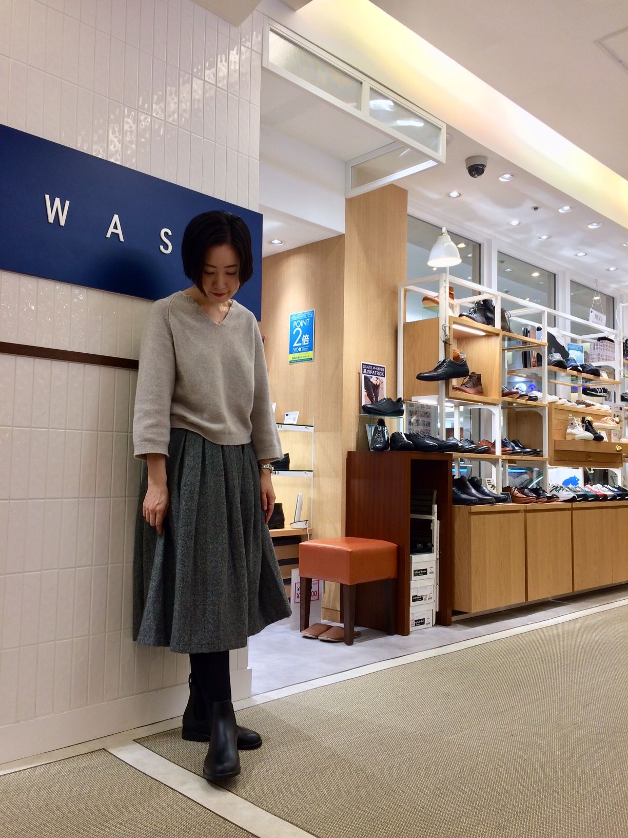 シンプルですのでどんなコーデにも合わせやすい大人のレインブーツですね。