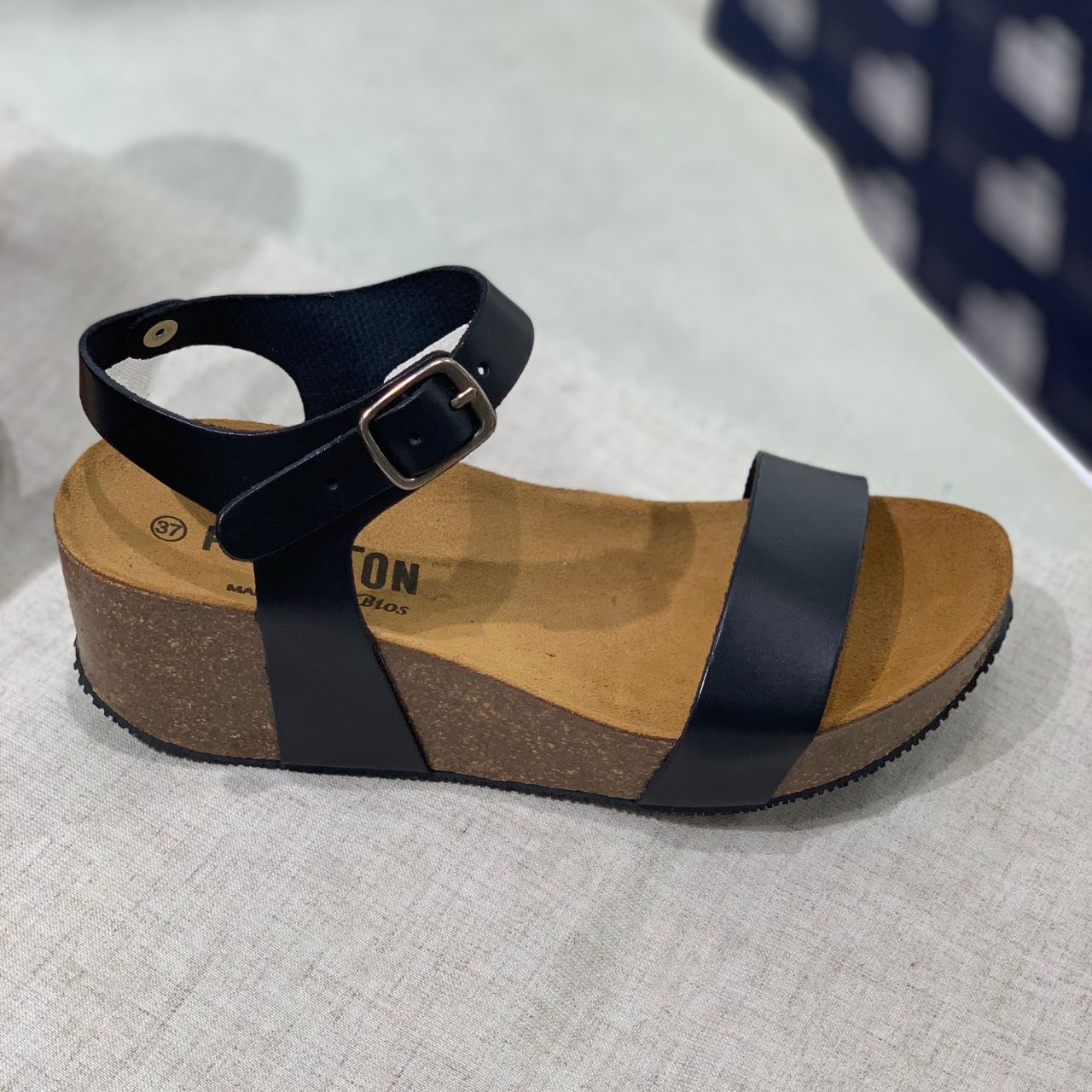 厚底のコルクソールで