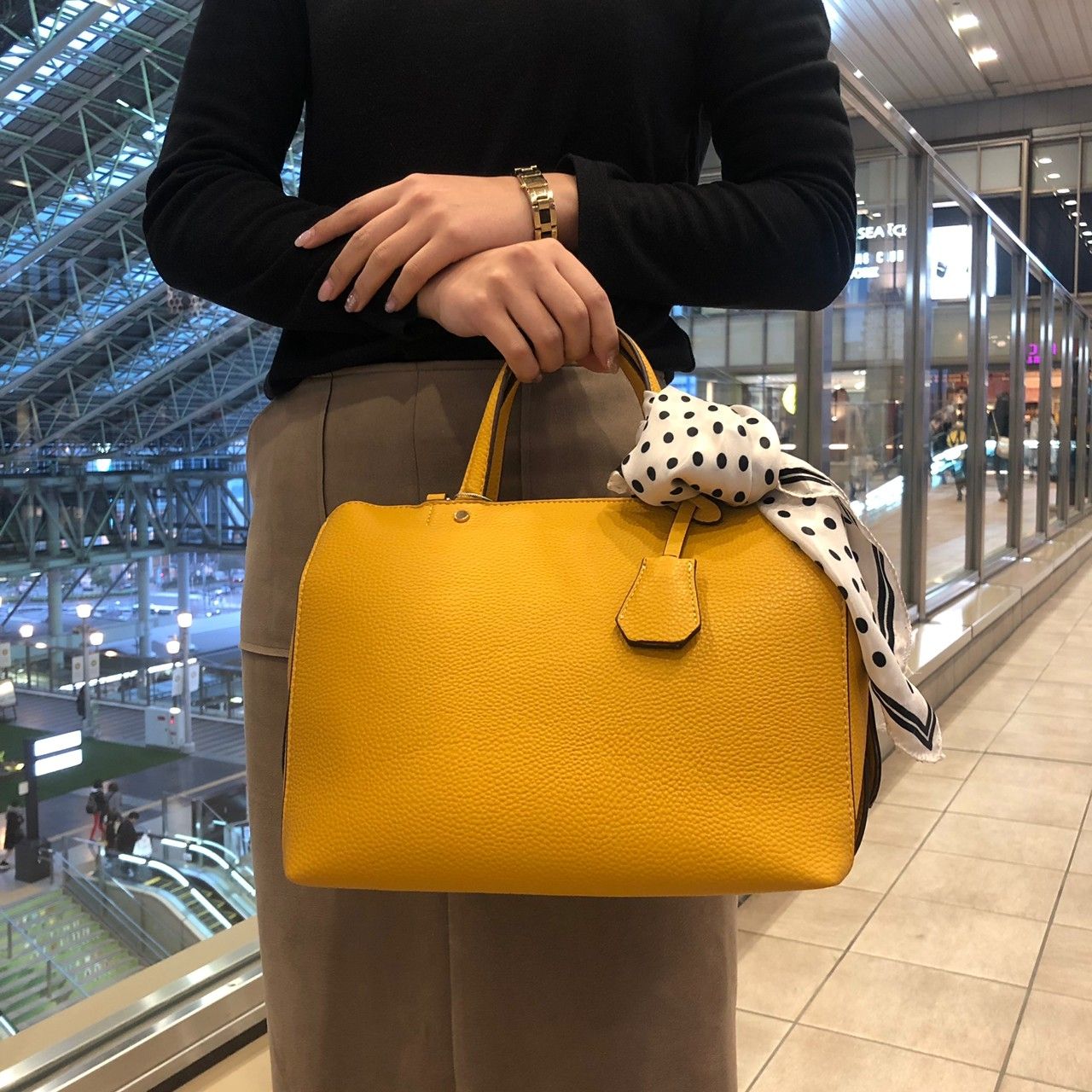 今回は、バッグ一つで全身がぱっと明るくなるイエローを持っていただきました♡