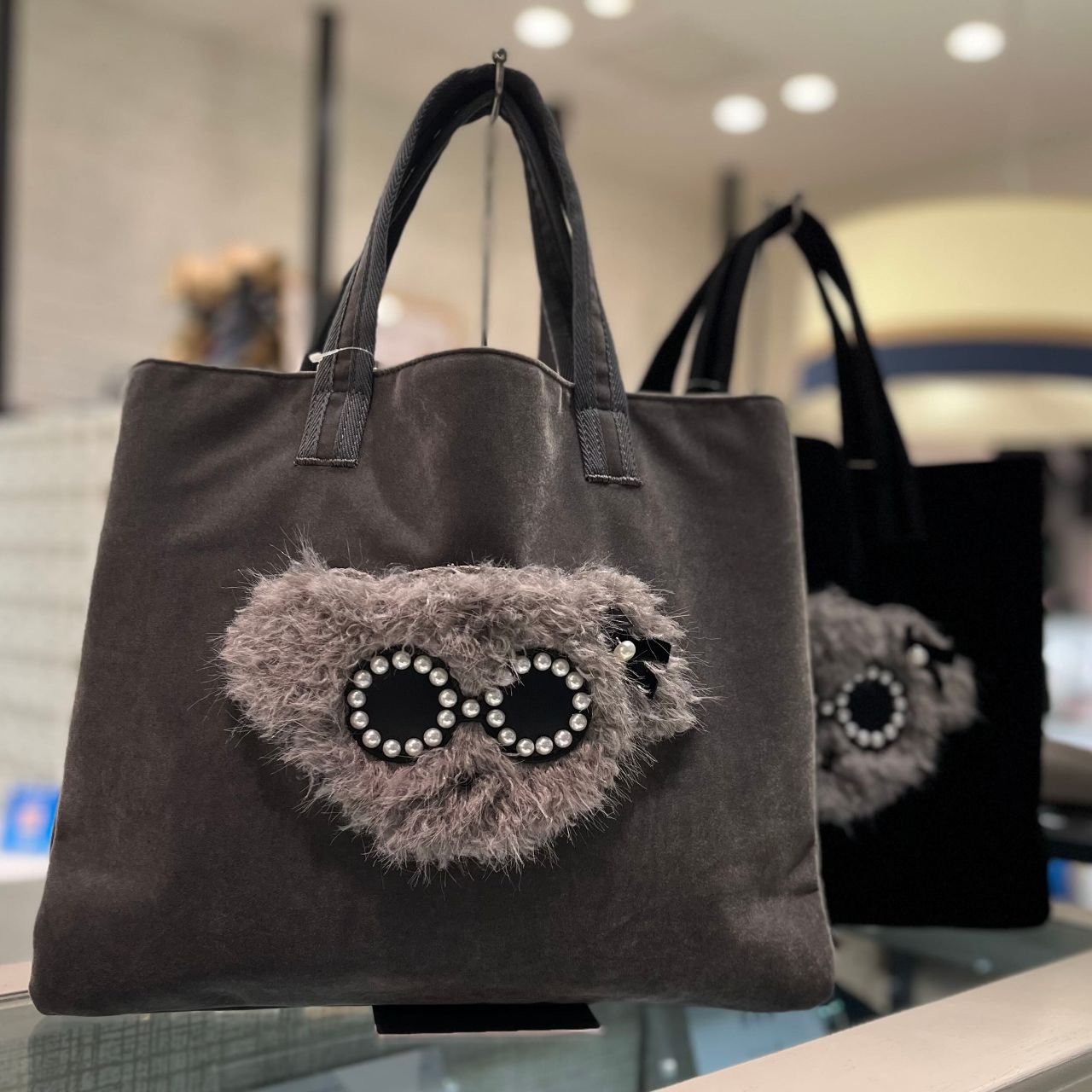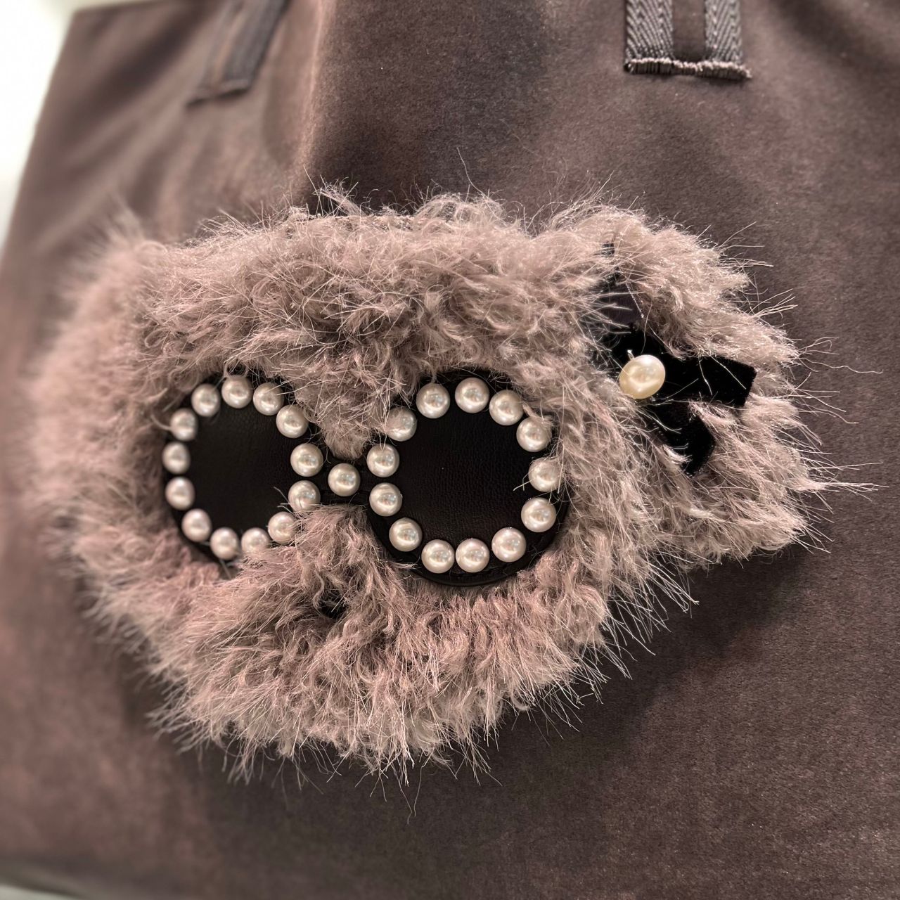 パールサングラスが魅力的なアジョリーから、ベロア素材のアニマル(犬)トートバッグが入荷しております。