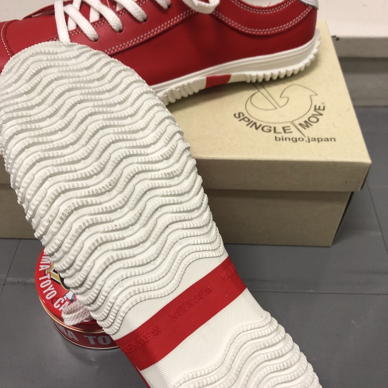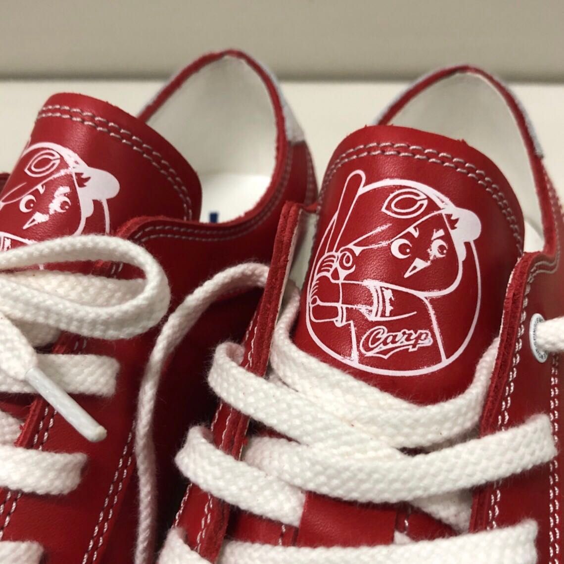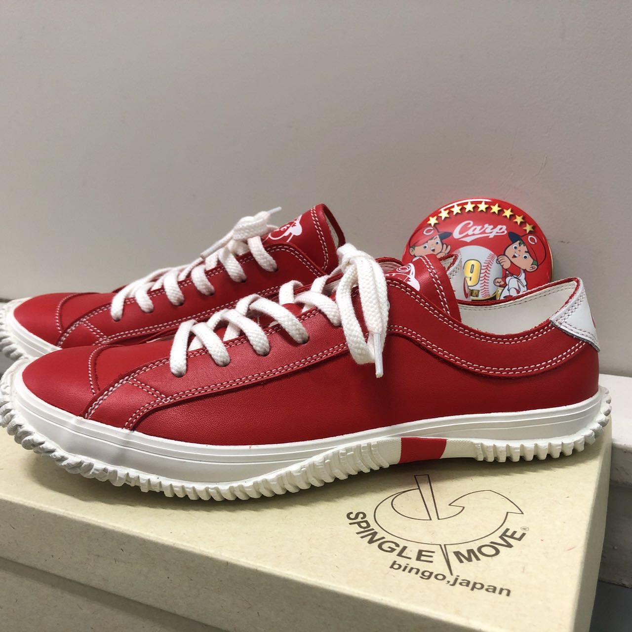 球団カラーのレッドとホワイトを基調にしたローカットスニーカーになります。