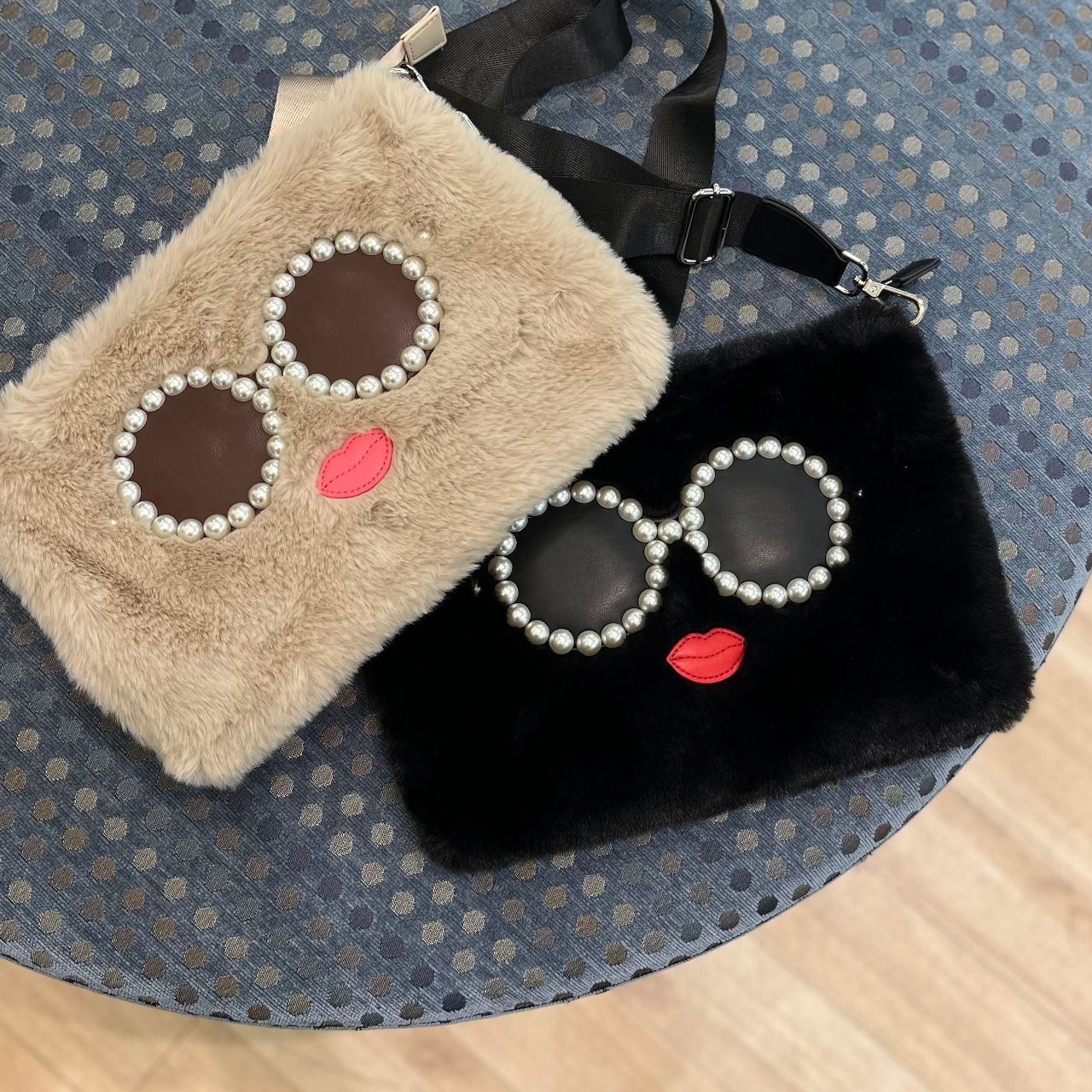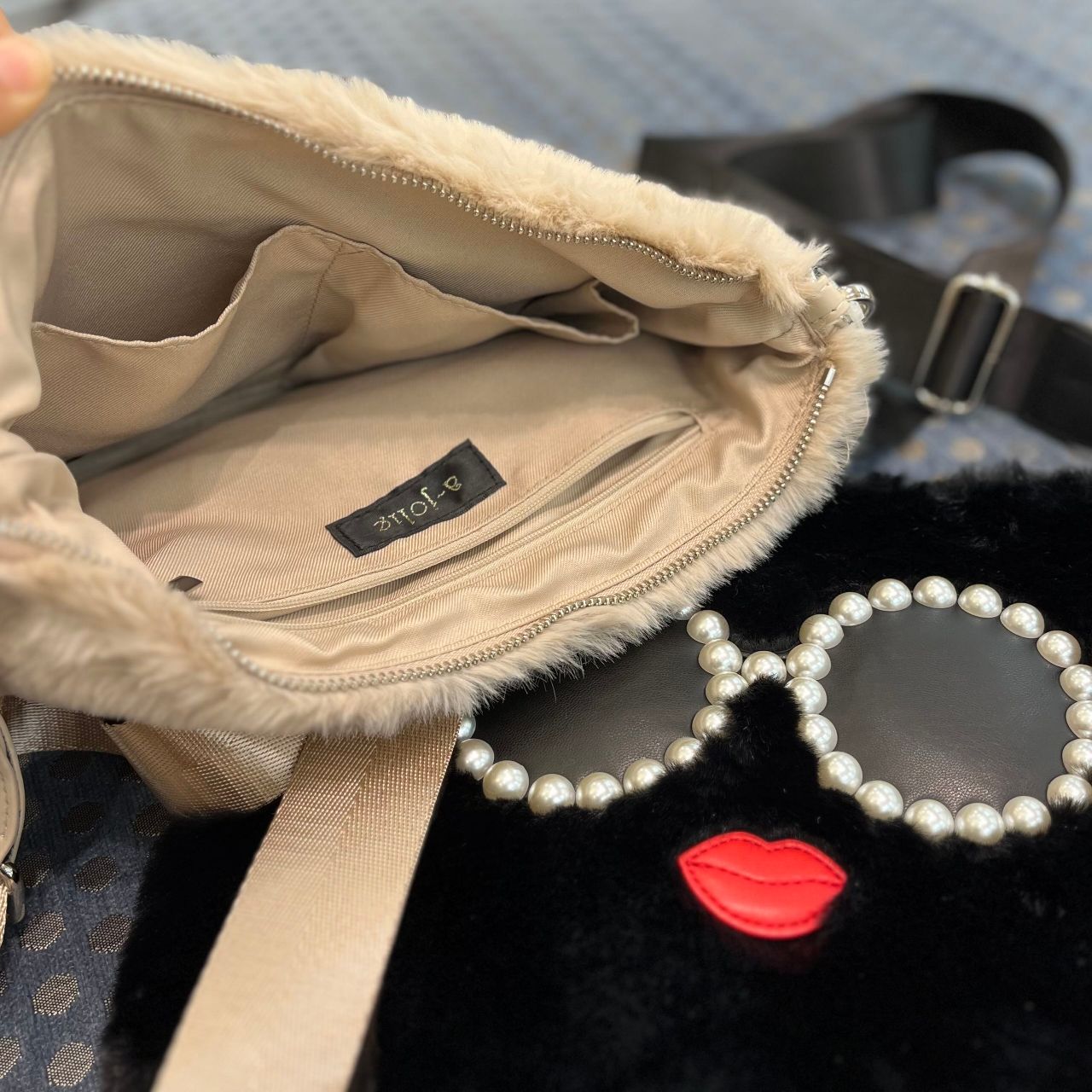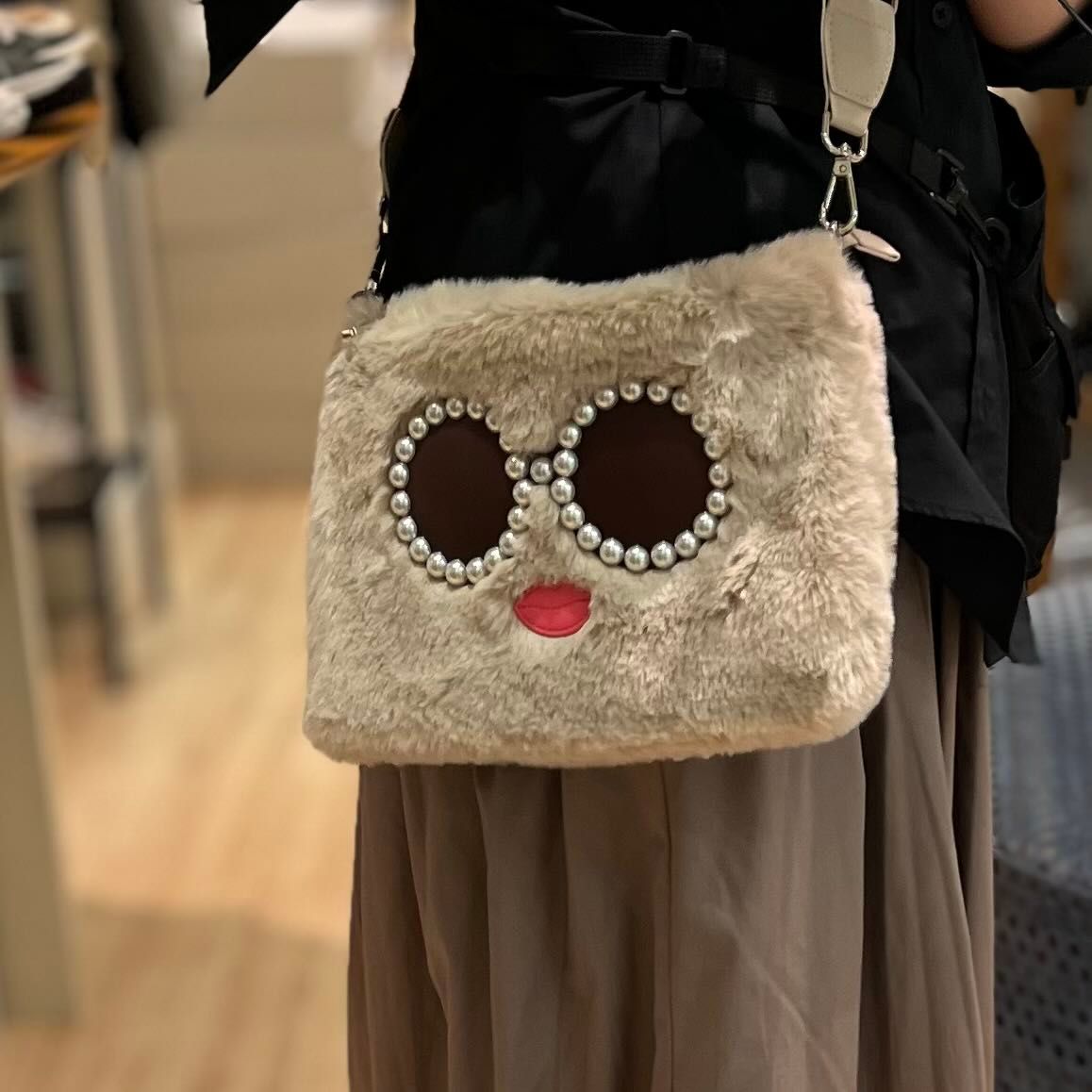 a jolie (アジョリー)の大人気サングラスフェイスのもこもこファースマホショルダー。