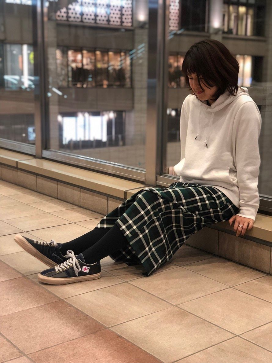 ブーツだと全体のトーンが重たくなりがちな時にも、頼れるスニーカー!