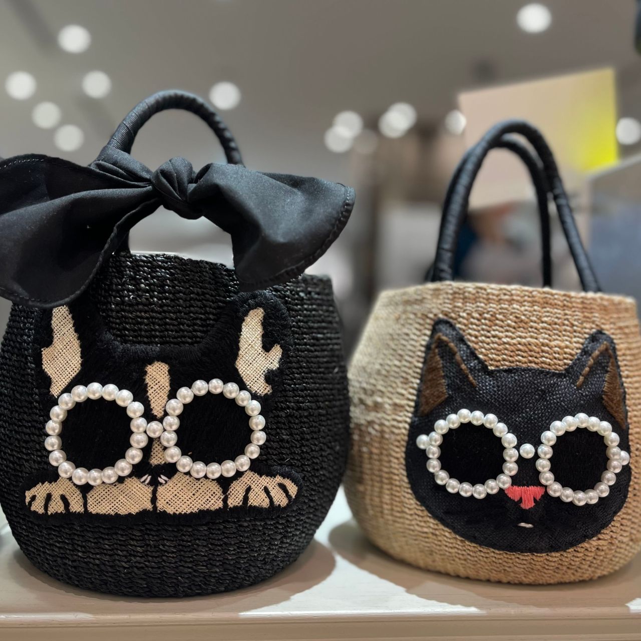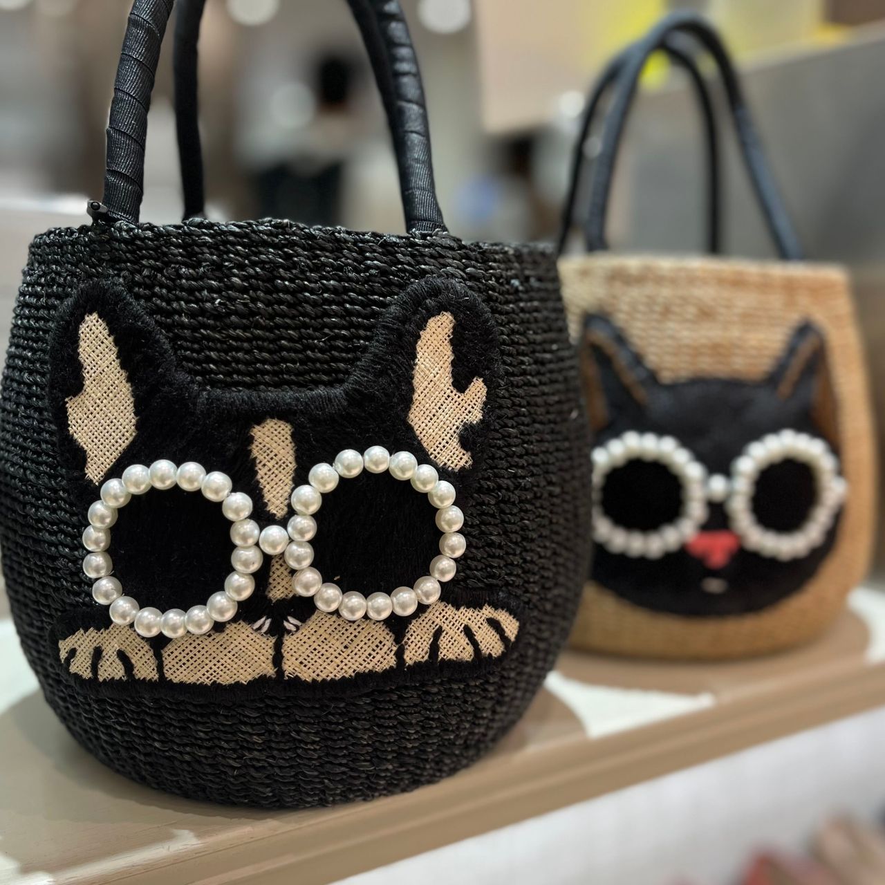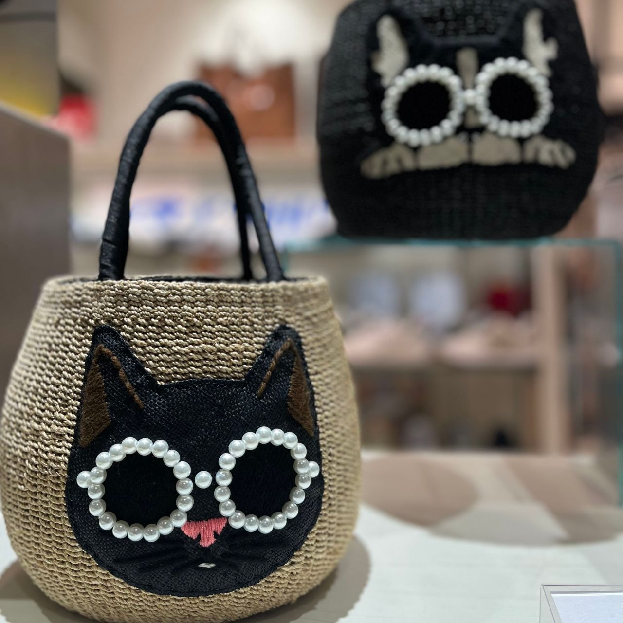 パールで縁取られたサングラスをかけたアニマルなカゴバッグが入荷しております。