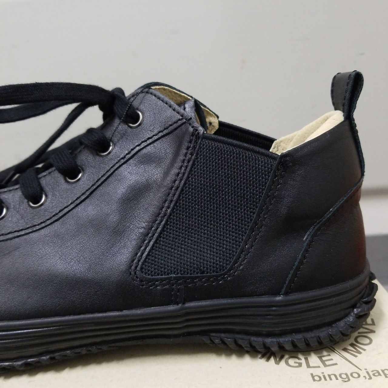 革、ステッチ、紐、さらにはソールもブラック。オールブラックに仕上げております。