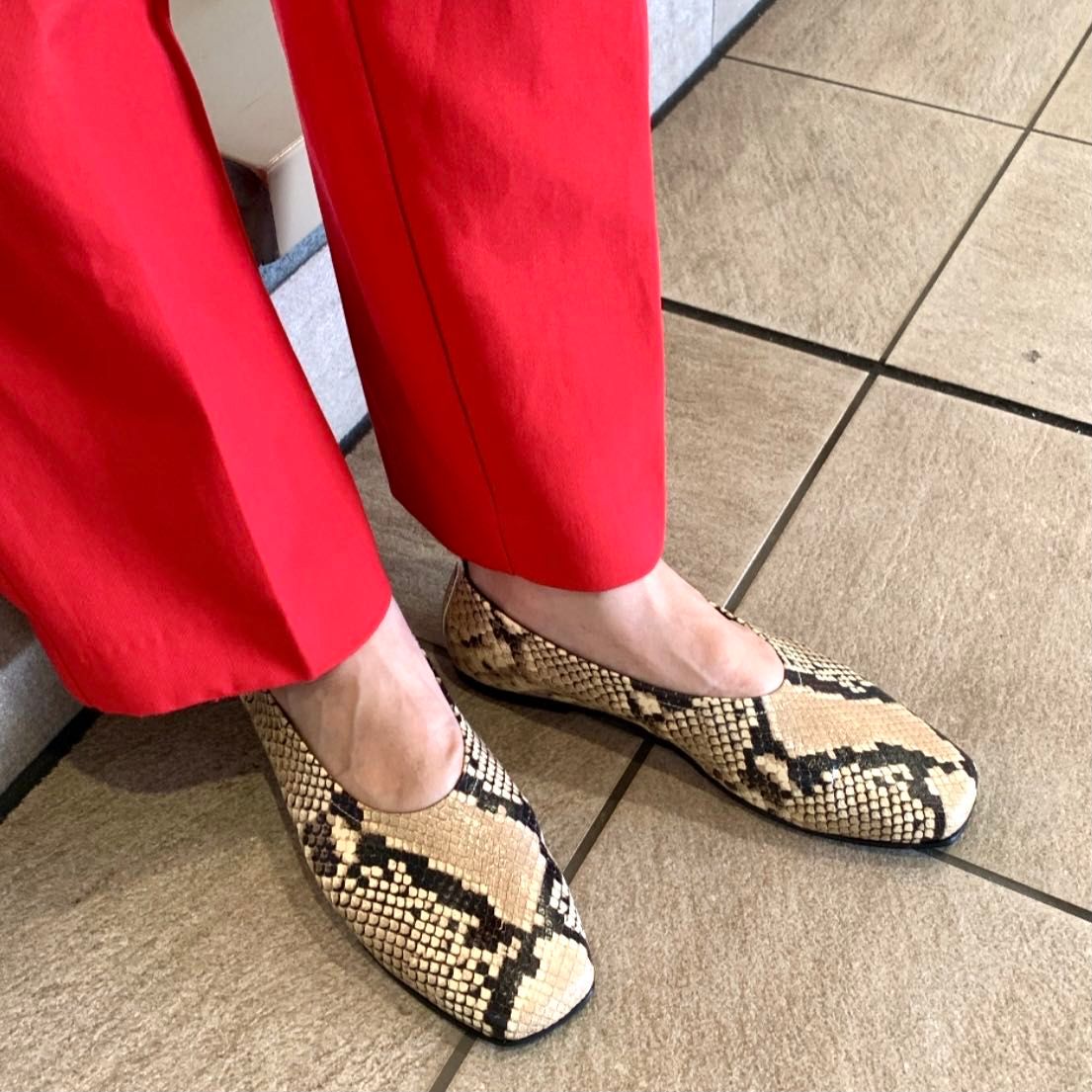 人気のスクエアトゥフラットシューズ。