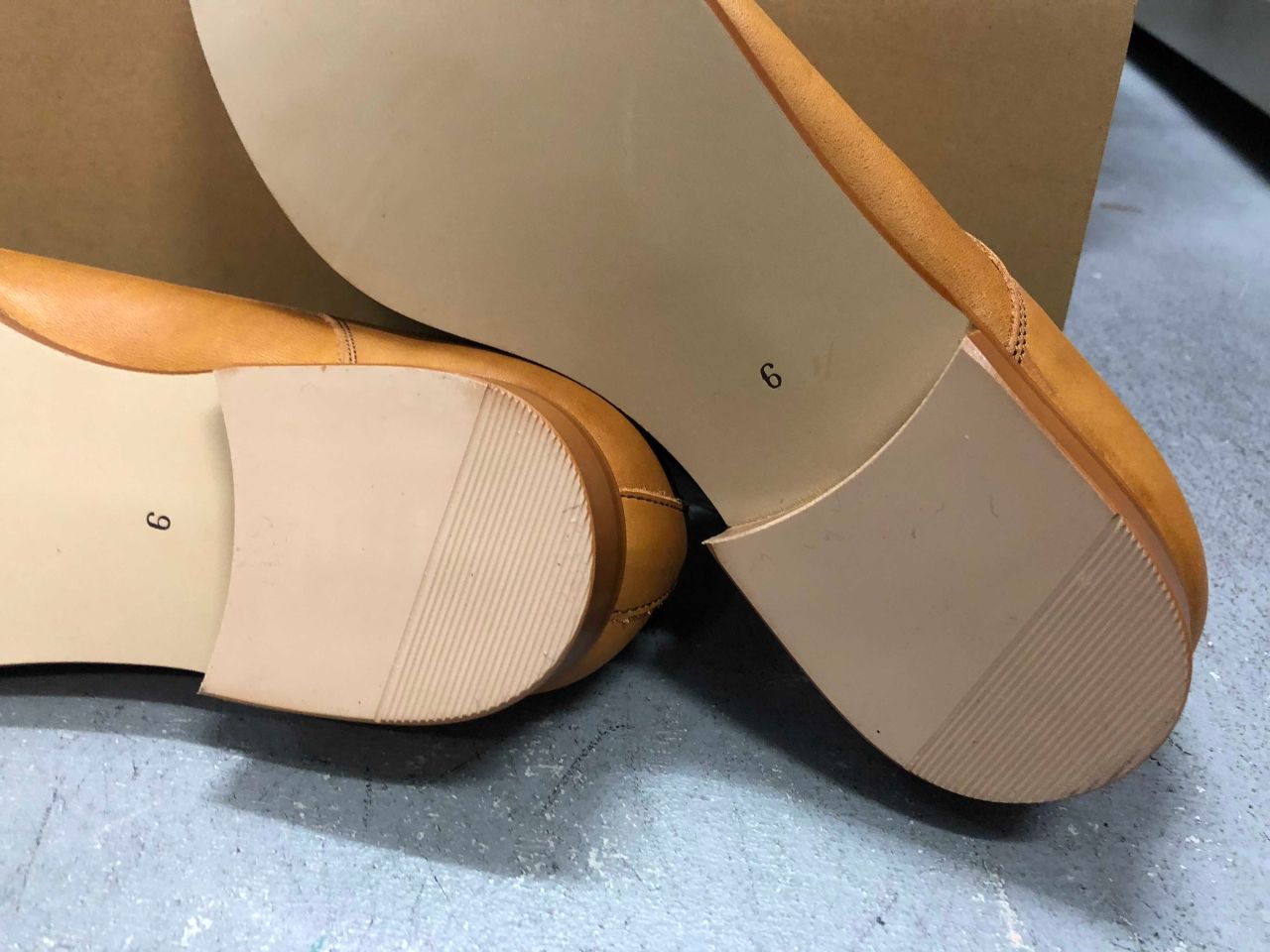 つま先の部分に横に一文字の縫い目のラインがあるデザイン。