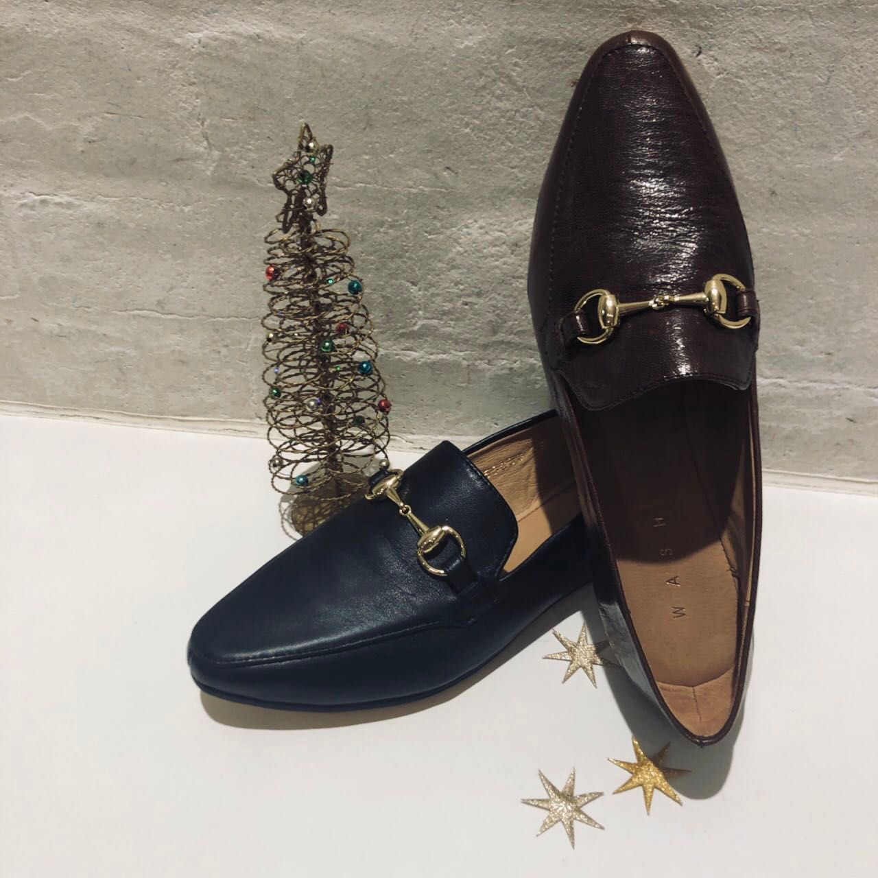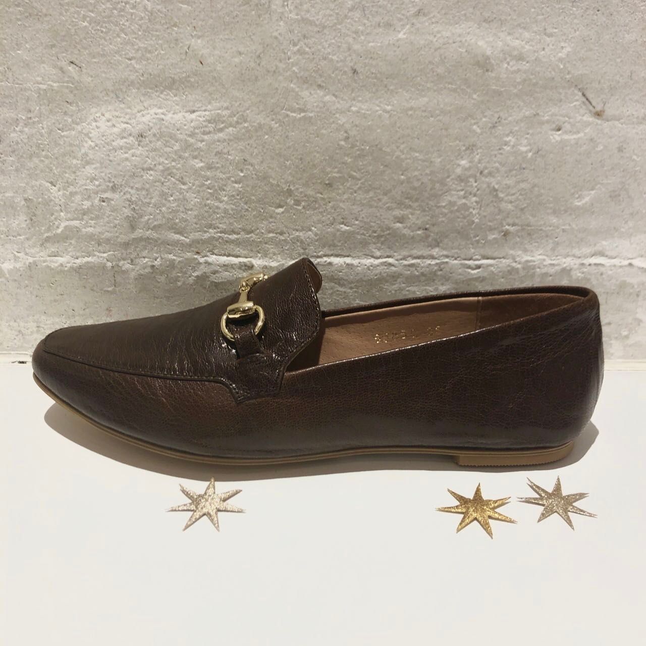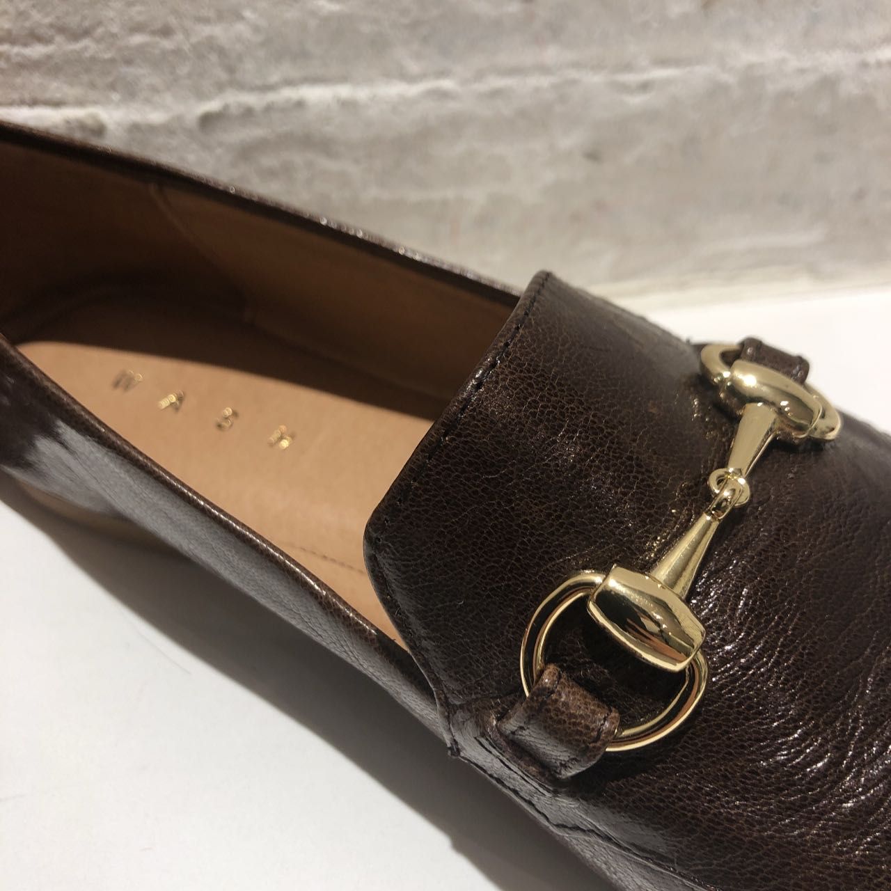 すらりと伸びたトゥシルエットで大人のきれいめカジュアルを意識しているこちらのビット付き甲深シューズ。