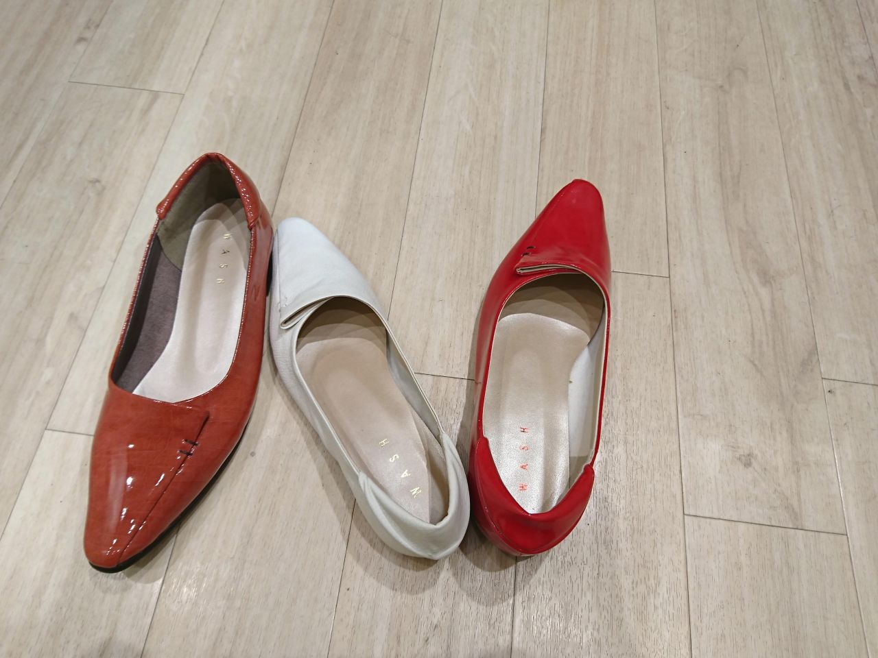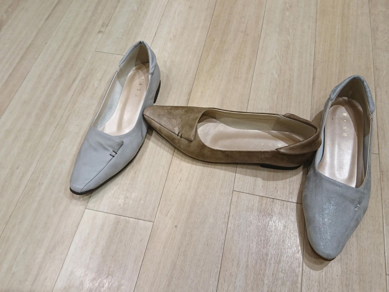 (ヒールタイプ、フラットタイプの区別がかなりわかりづらい写真になっていますので、是非詳細は店頭でご覧くださいm(__)m)
