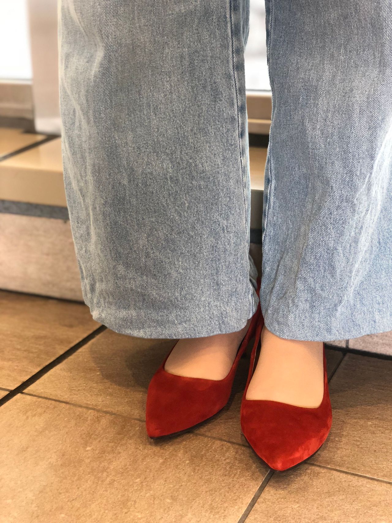 スエード素材なので、ジーンズのカジュアル感もすこし上品にしてくれます✴︎