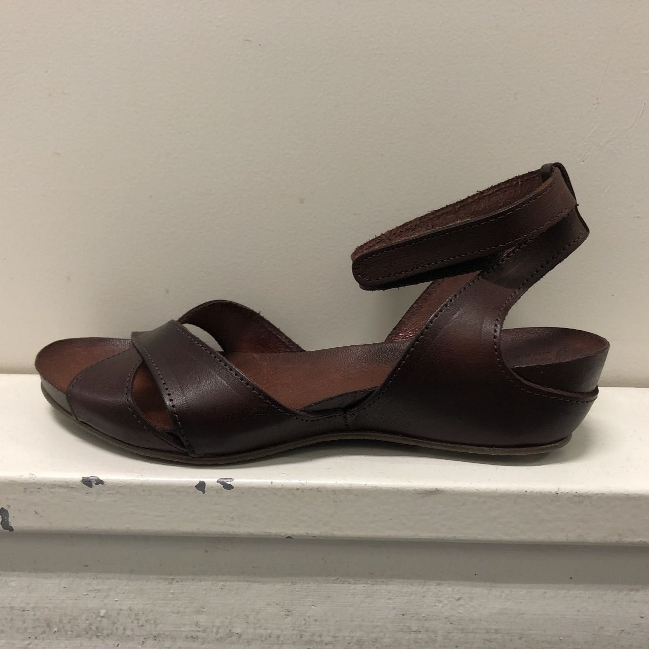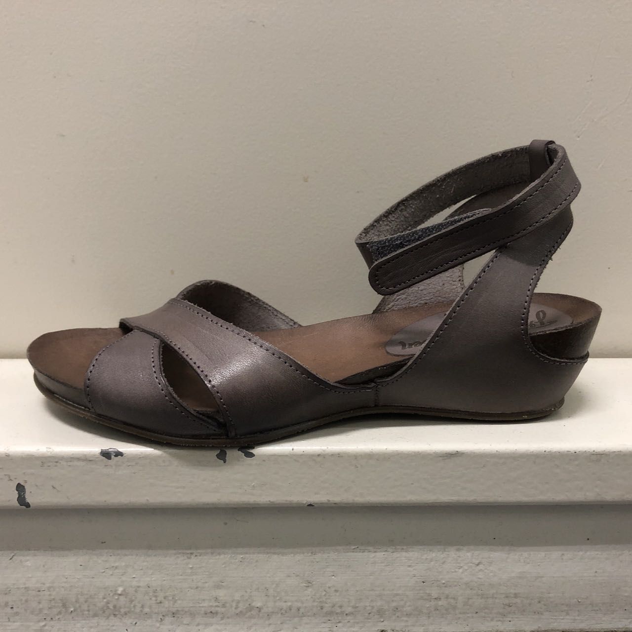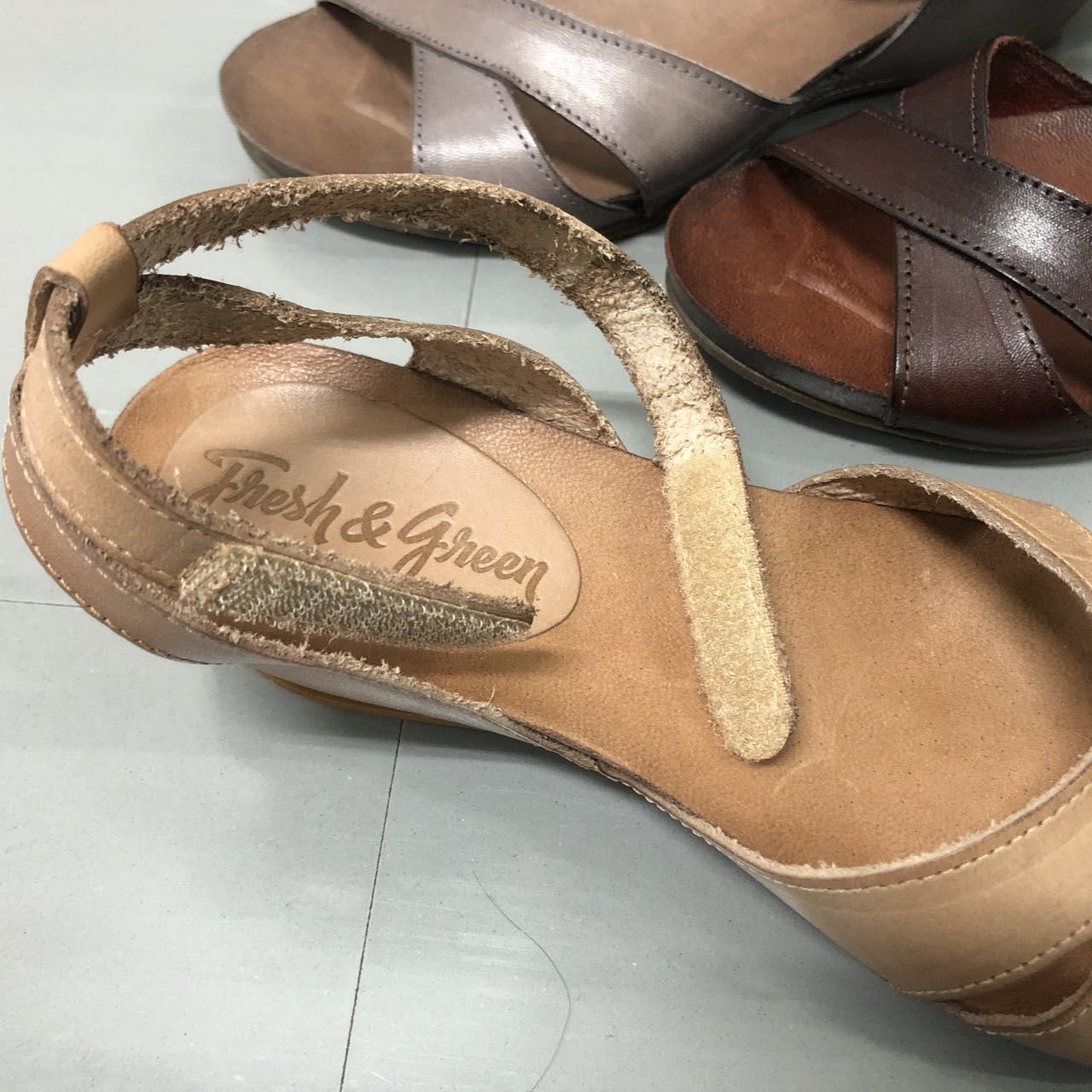 シンプルなクロスデザインのレザーサンダルになっております。