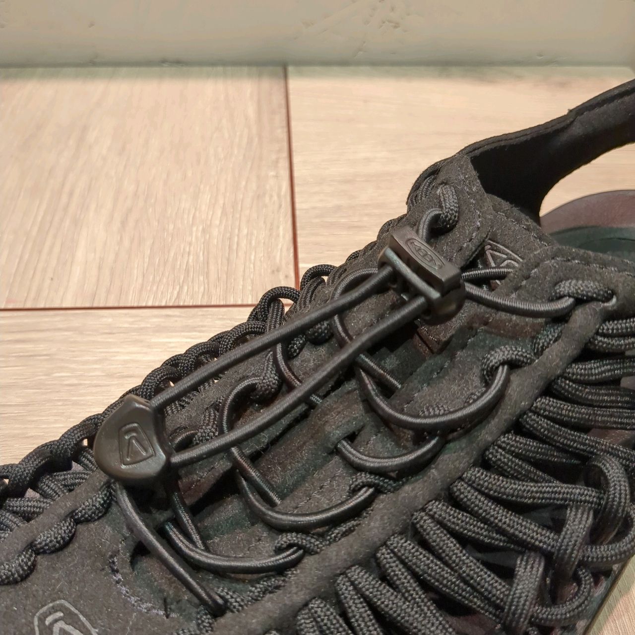 また、スニーカーのシューレースにあたる部分は、ゴム素材になっています。