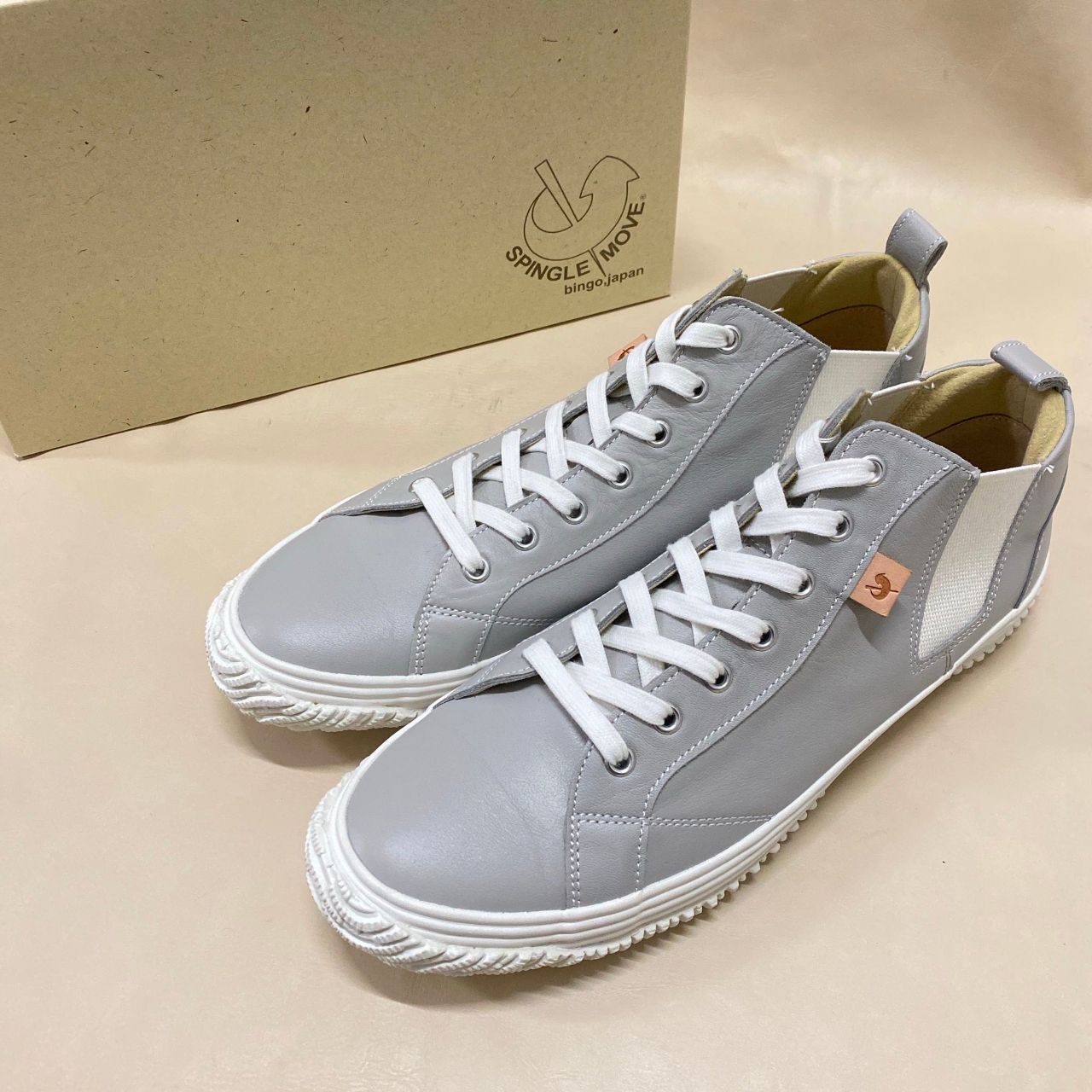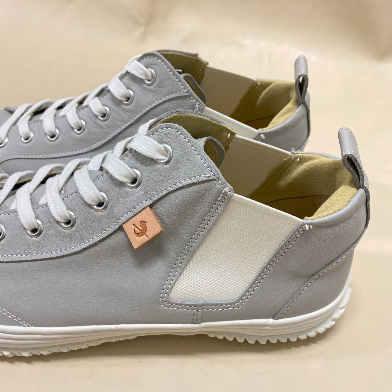 淡いグレーのアッパーに、サイドゴム・ステッチ・シューレース・ソールを全てホワイトカラーでまとめた大人のレザースニーカー♡